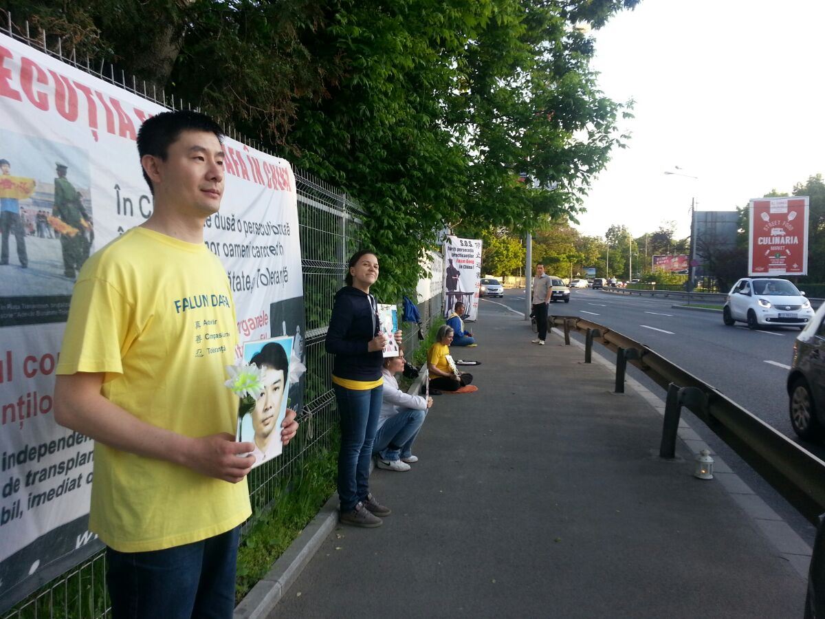 部份罗马尼亚法轮功学员们来到了中共驻罗马尼亚大使馆前,举行了和平抗议活动。