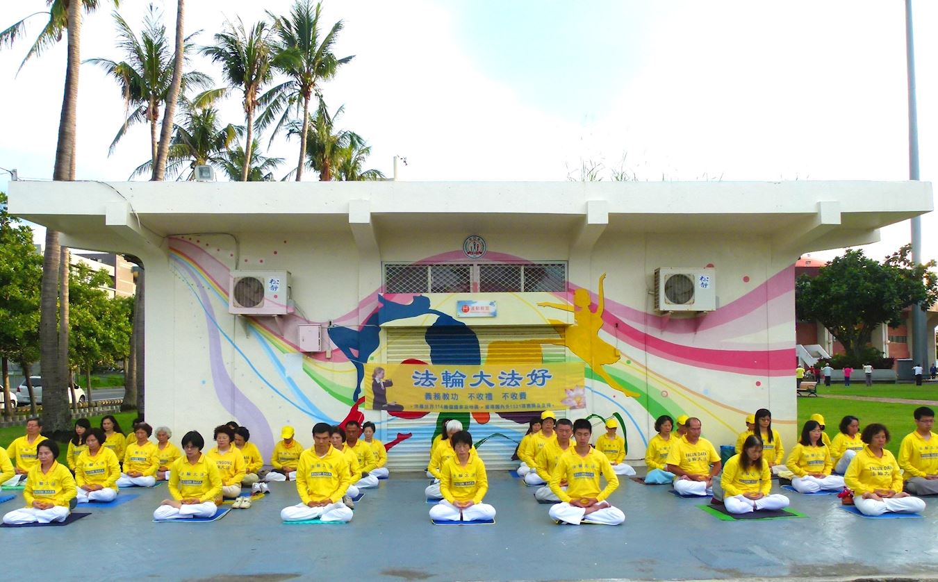 台东部份法轮功学员于五月十三日清晨在县立体育场集体炼功,五套优美的功法伴随着祥和的炼功音乐,展现法轮大法的美好与殊胜,吸引许多人的目光,有人驻足拍照,有人称赞这是最美的一支队伍。