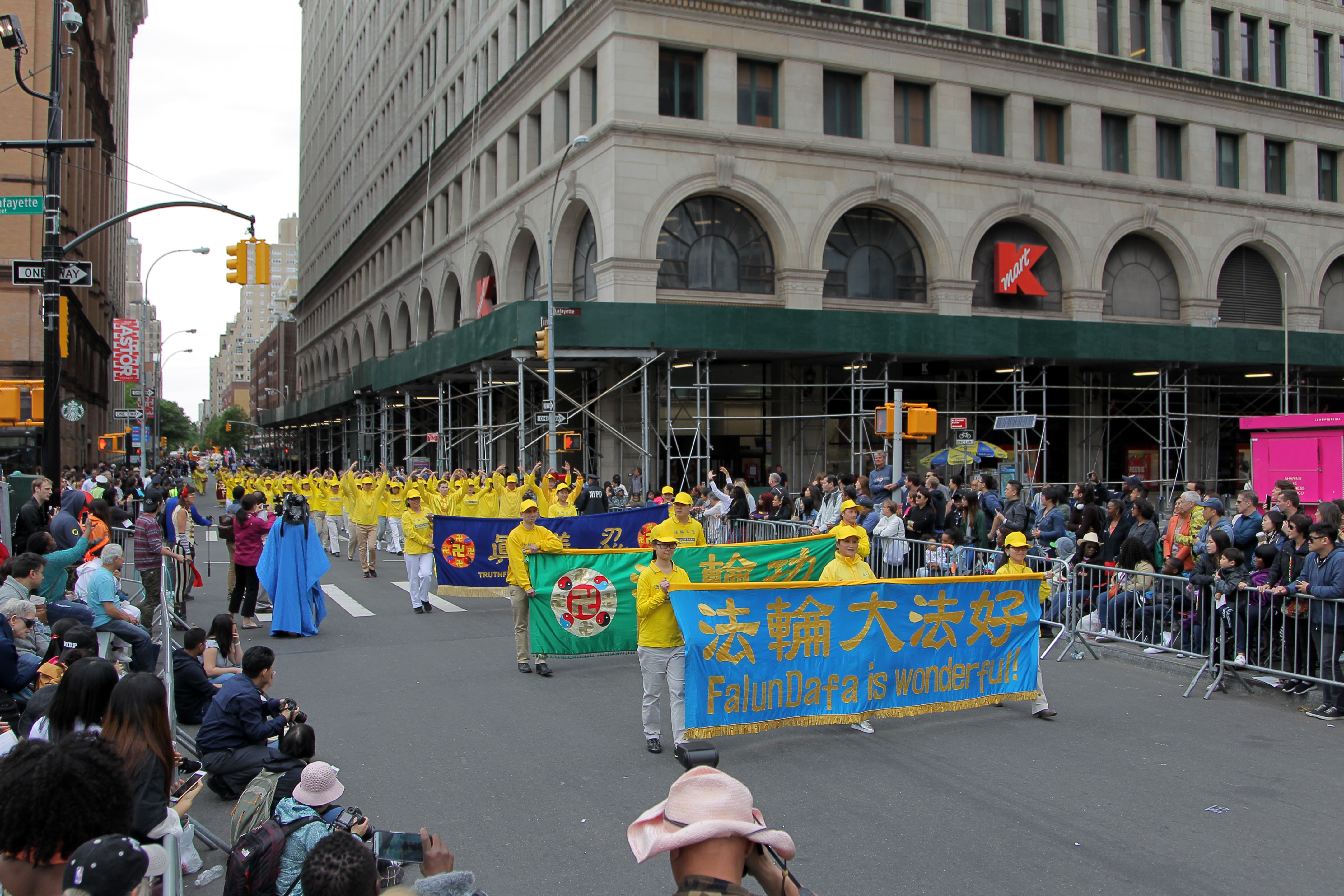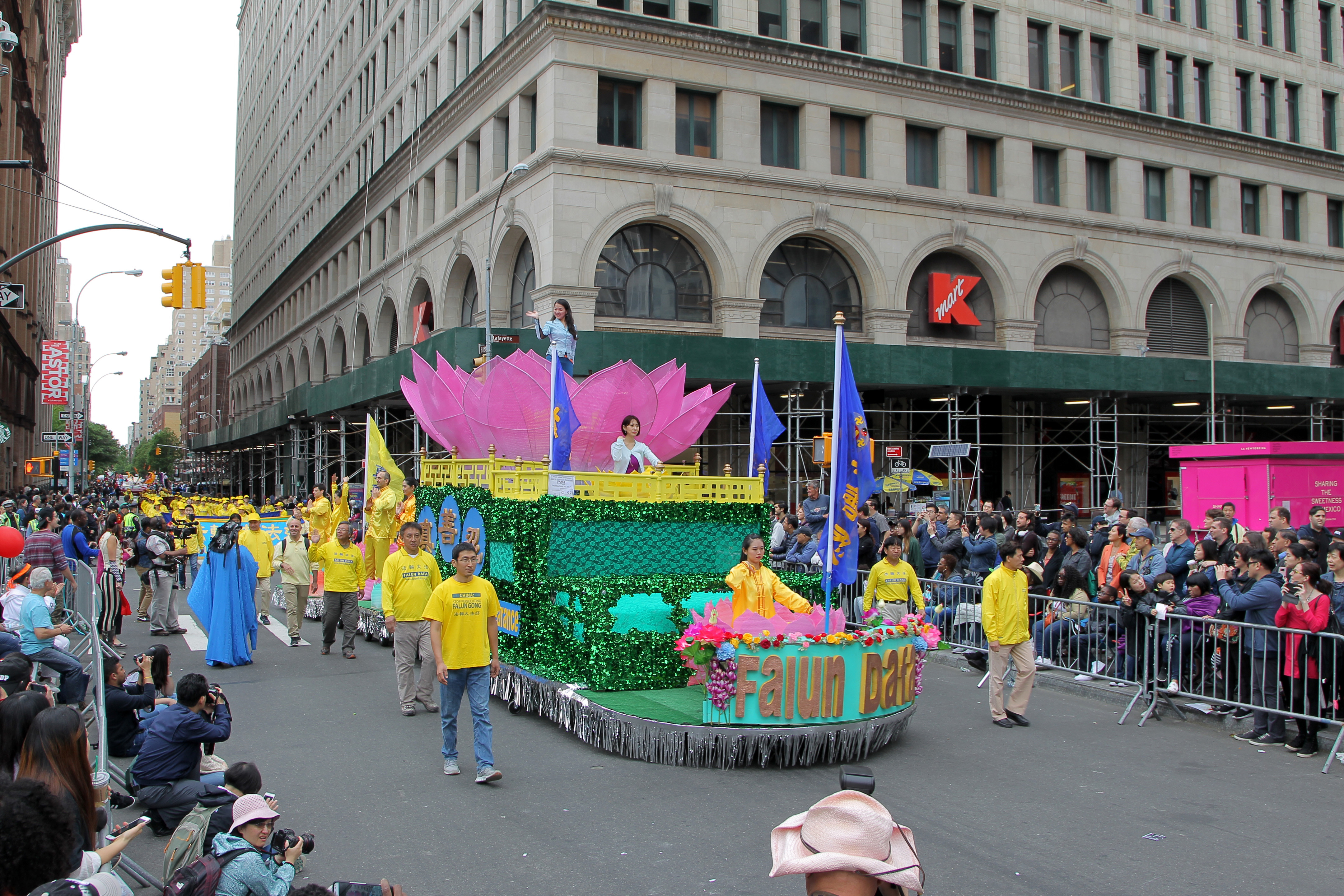 此活动是美国东北部最大规模的民间舞蹈庆典,当天,百老汇大街化身为流动的舞台,从东南亚、欧洲到南美,数千名表演者展示了八十种风格各异、各具特色的民族舞蹈,让两边围观的数万名观众大饱眼福。其中祥和的法轮大法队伍犹如灿烂夺目的钻石,光芒温暖着现场所有人士。民众纷纷表示“很美”、“很感人!”