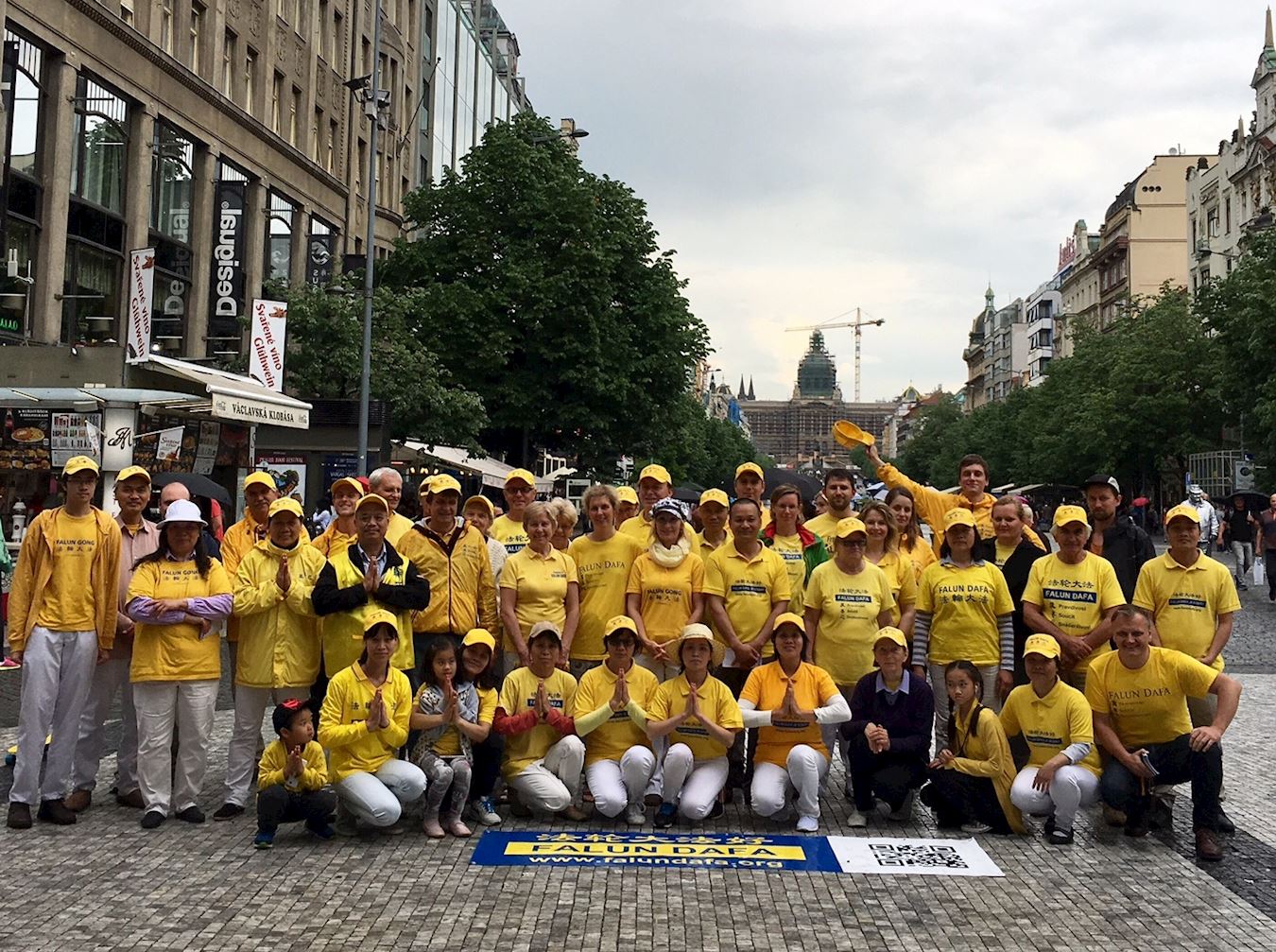 '图1:法轮功学员在捷克布拉格遥祝师尊李洪志先生生日快乐!'