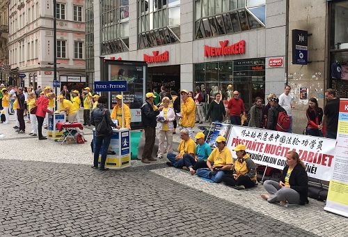 【明慧网二零一七年五月二十五日】捷克法轮功学员于二零一七年五月十三日在布拉格瓦茨拉夫广场举行活动,庆祝世界法轮大法日和师尊李洪志先生华诞。学员们在布拉格市中心向世人介绍法轮功,展示功法,并征集签名谴责中共对法轮功长达十八年的残酷迫害。人们积极签名,并表示:支持法办迫害元凶江泽民,呼吁制止中共迫害法轮功。