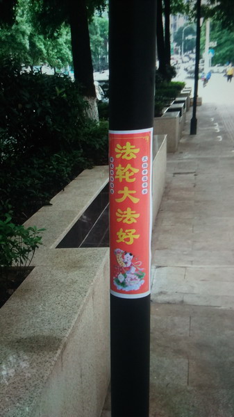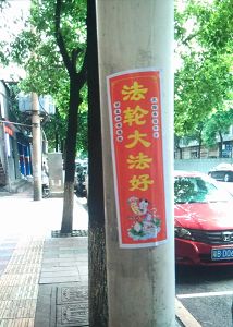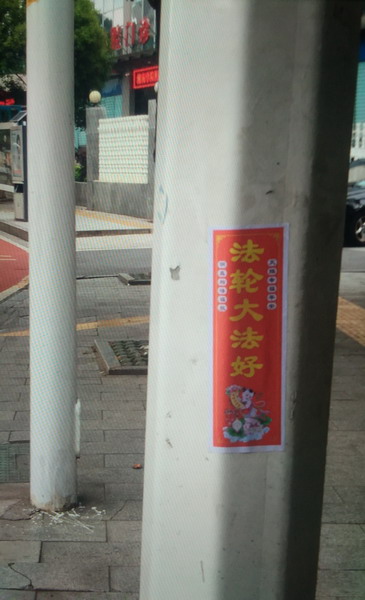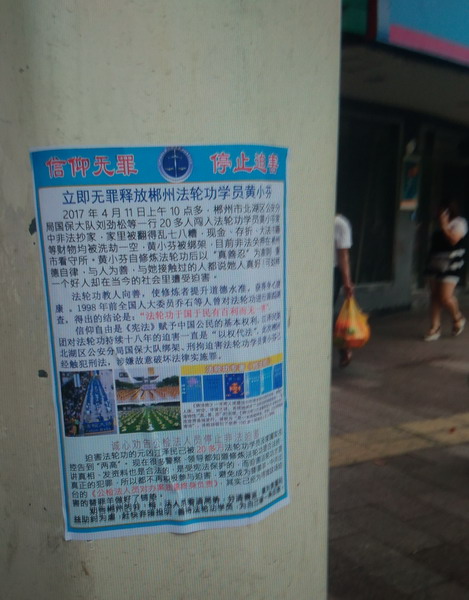 “法轮大法好”、“立即无罪释放法轮功学员黄小芬”,等信息在湖南省郴州市的大街小巷广泛传播。
