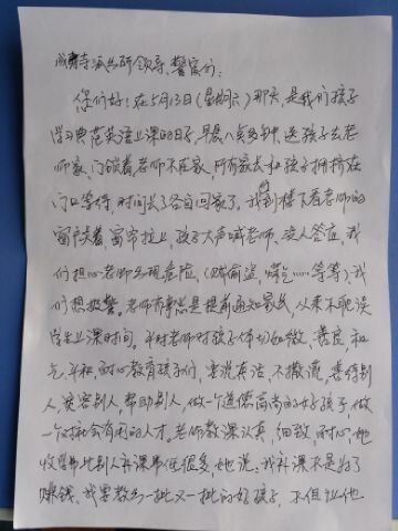 ![]() 学生家长致成寿寺派出所领导警察们的信 |