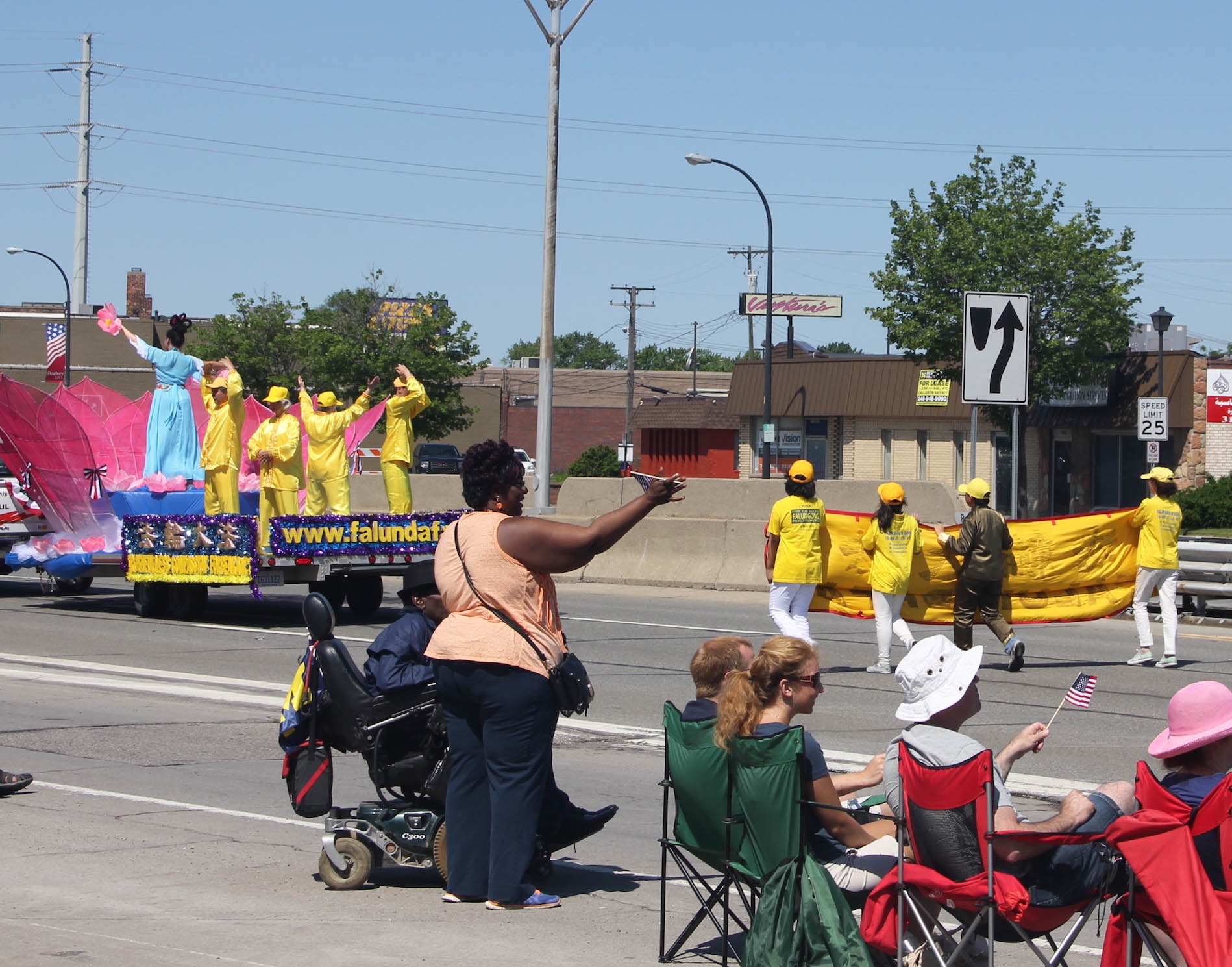 <英文版: http://en.d2s3ombhnov3zf.cloudfront.net/html/articles/2017/6/1/164086.html>密西根“纪念日”游行 真善忍带给民众美好(图)