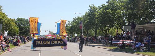 法轮功学员组成的方阵由旌旗阵,唐鼓阵,大型的莲花花车,功法展示和仙女队组成,在游行起点就非常引人注目,学员们还打出了“法轮大法”,“法轮大法传授真善忍”,“法轮大法好”等英文横幅,让两旁的观众耳目一新,方阵走过,掌声和欢呼声不断,并相互惊叹的表示,“第一次看到华人参加游行!”“他们的花车绝对是最漂亮的!”很多民众挥臂向学员们致敬。维持秩序的警察也受此感染,也向法轮功学员们合十表示敬意。