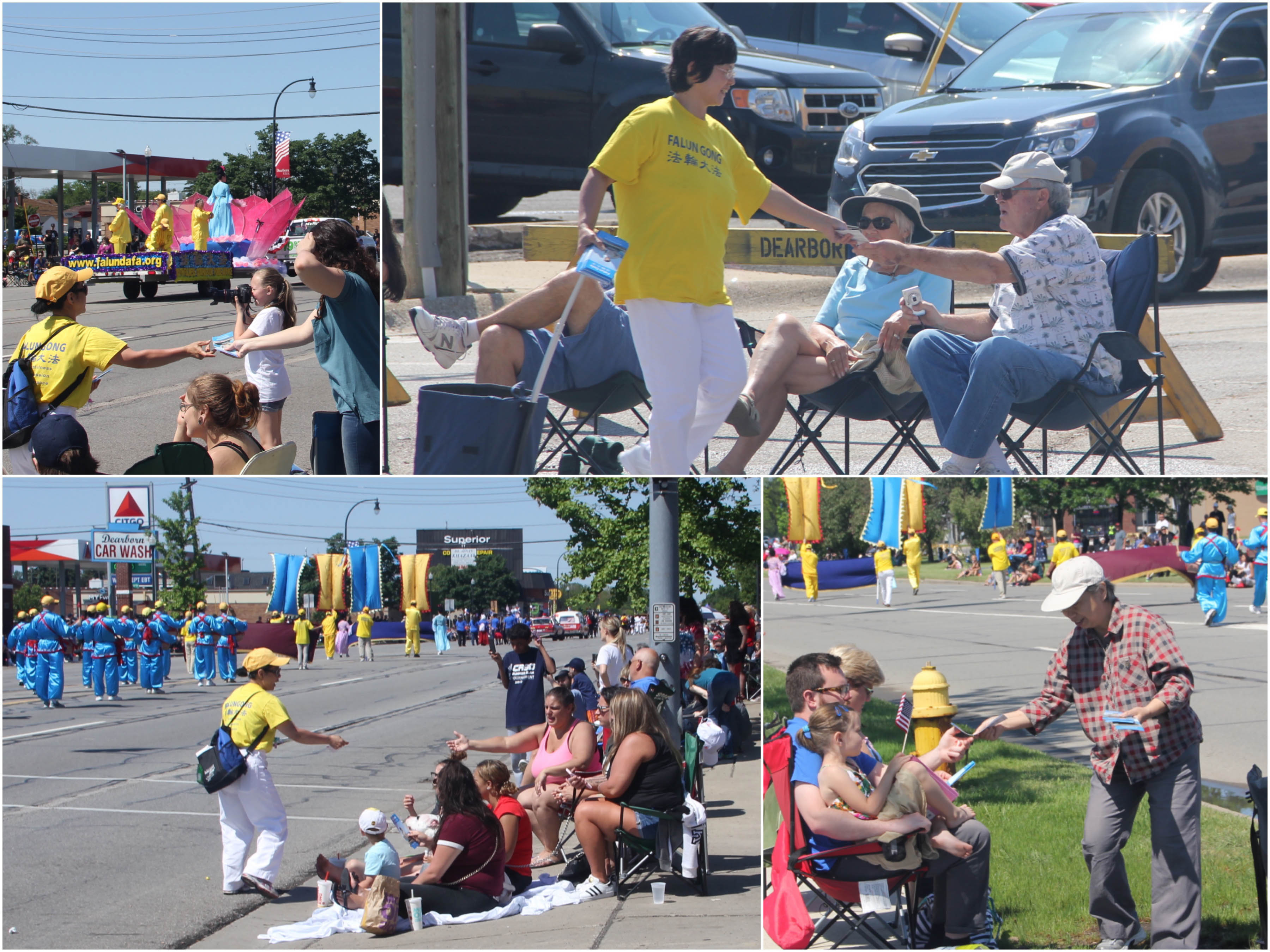 【明慧网二零一七年五月三十一日】二零一七年五月二十九日上午十时,密歇根州迪尔本市(Dearborn City)举行了大型的“阵亡将士纪念日”游行,这也是密西根历史上最悠久的游行,今年是第九十三届。迪尔本市是世界著名的福特汽车公司全球总部所在地,游行从密西根大道西部开始,向东一直走到福特百年纪念图书馆。晴朗的天气吸引了上万名现场观众。由密西根法轮大法协会组织的方阵首次参加了这个历史悠久的游行。