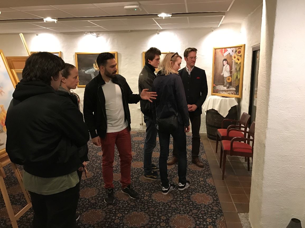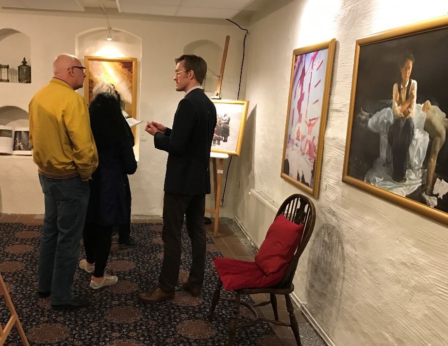 有一位新加坡裔瑞典人,也在画展驻足了很久,之后他认真的写下了他最喜欢的三幅画的名字,并带走了展览手册想要回家再仔细看看。期间,一位法轮功学员一直陪伴他给他讲解画作,并分享她被迫害的亲身经历,他深受感动,离开后良久,他又回到画展,并买了一包糖作为礼物送给了这位法轮功学员,最后,离开前,这位男士多次表示感谢。