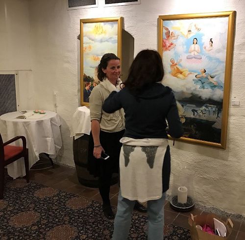 一位来自波兰的年轻姑娘,她说来画展的前并没有很大的期待,可是来了之后她深深地被震撼了。虽然来自于前共产主义国家,但她对独裁统治的概念还是停留在父母给她讲的故事里面。看过画展后,她也与在中国遭受过迫害的法轮功学员交谈,她非常震撼,最后她说:“我不知道我应该说什么,但是我可以拥抱你吗?” 随后她拥抱了这位在法轮功学员许久,在场的人都非常为之动容。之后她恋恋不舍地离开并说要开始学炼法轮功。