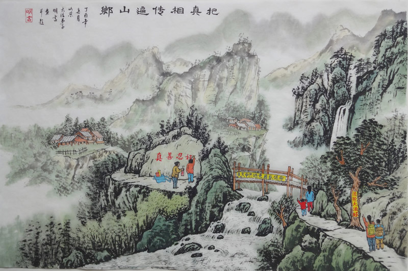 天黑未晓快起床同修相邀救人忙翻岭越壑云雾里为把真相遍山乡