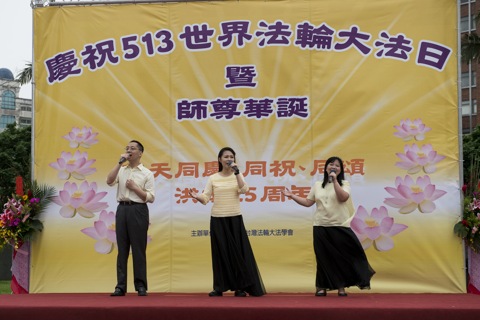 二零一七年是法轮大法开传二十五周年、第十八届“世界法轮大法日”暨法轮大法创始人李洪志先生六十六华诞。五月六日,台湾法轮功学员在中坜光明公园提前举办庆祝大会。