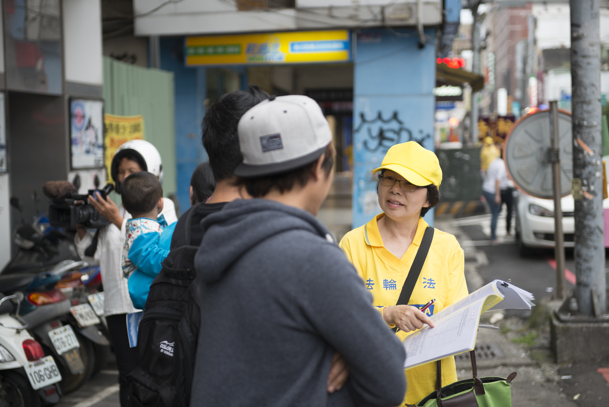 庆祝大会结束后,法轮功学员以近两个小时的踩街,途经繁华的中坜闹区,吸引民众的目光,不少人反应是第一次见到如此盛大的游行,也有有缘人了解法轮功的美好和迫害真相,除了支持反迫害之外,也进一步探询炼功点的资讯。