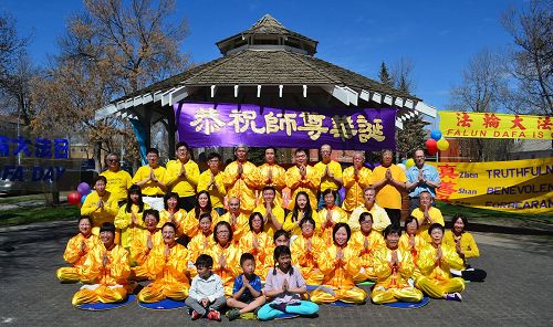 ![]() 图1~2:埃德蒙顿法轮功学员庆祝世界法轮大法日。 |