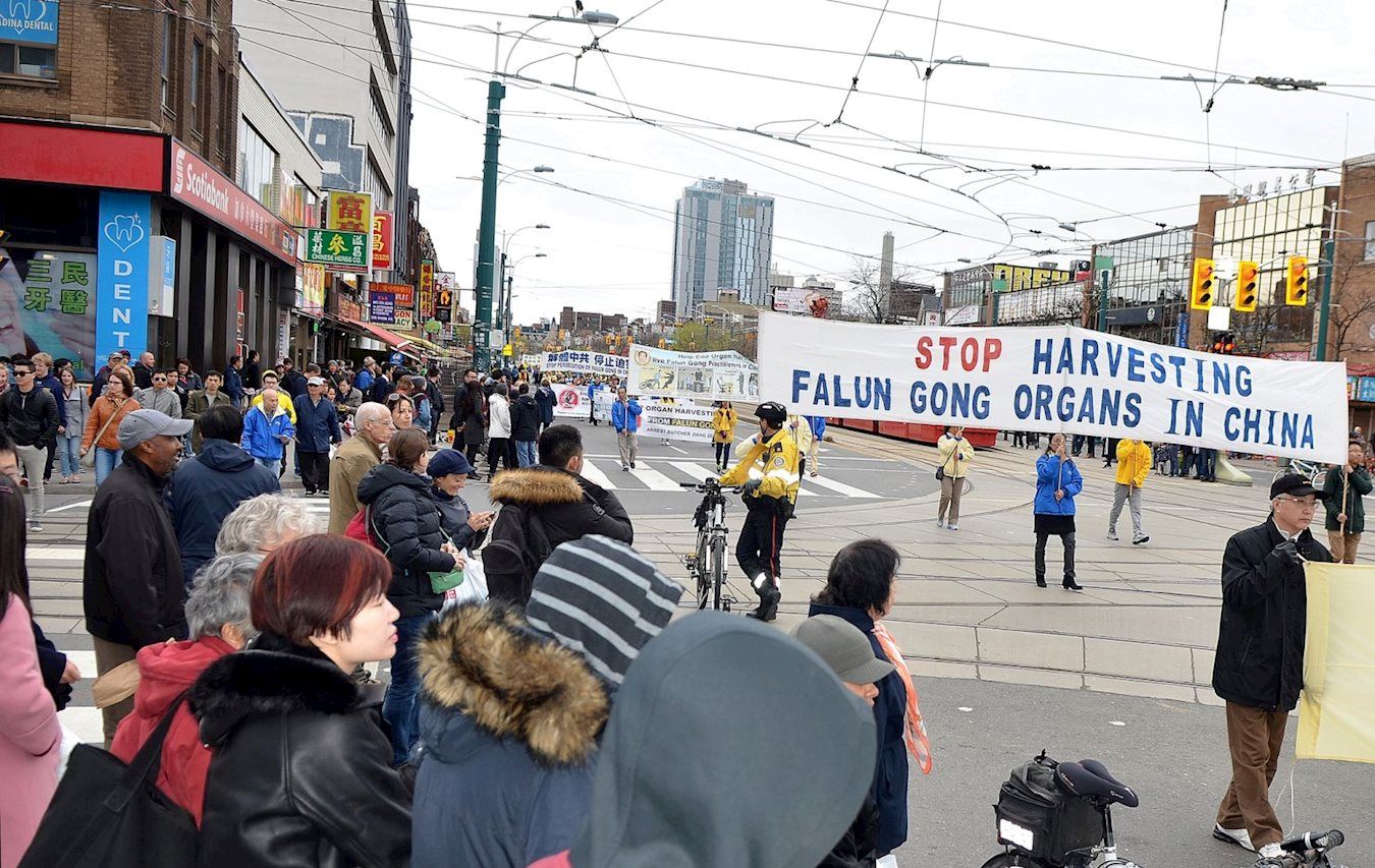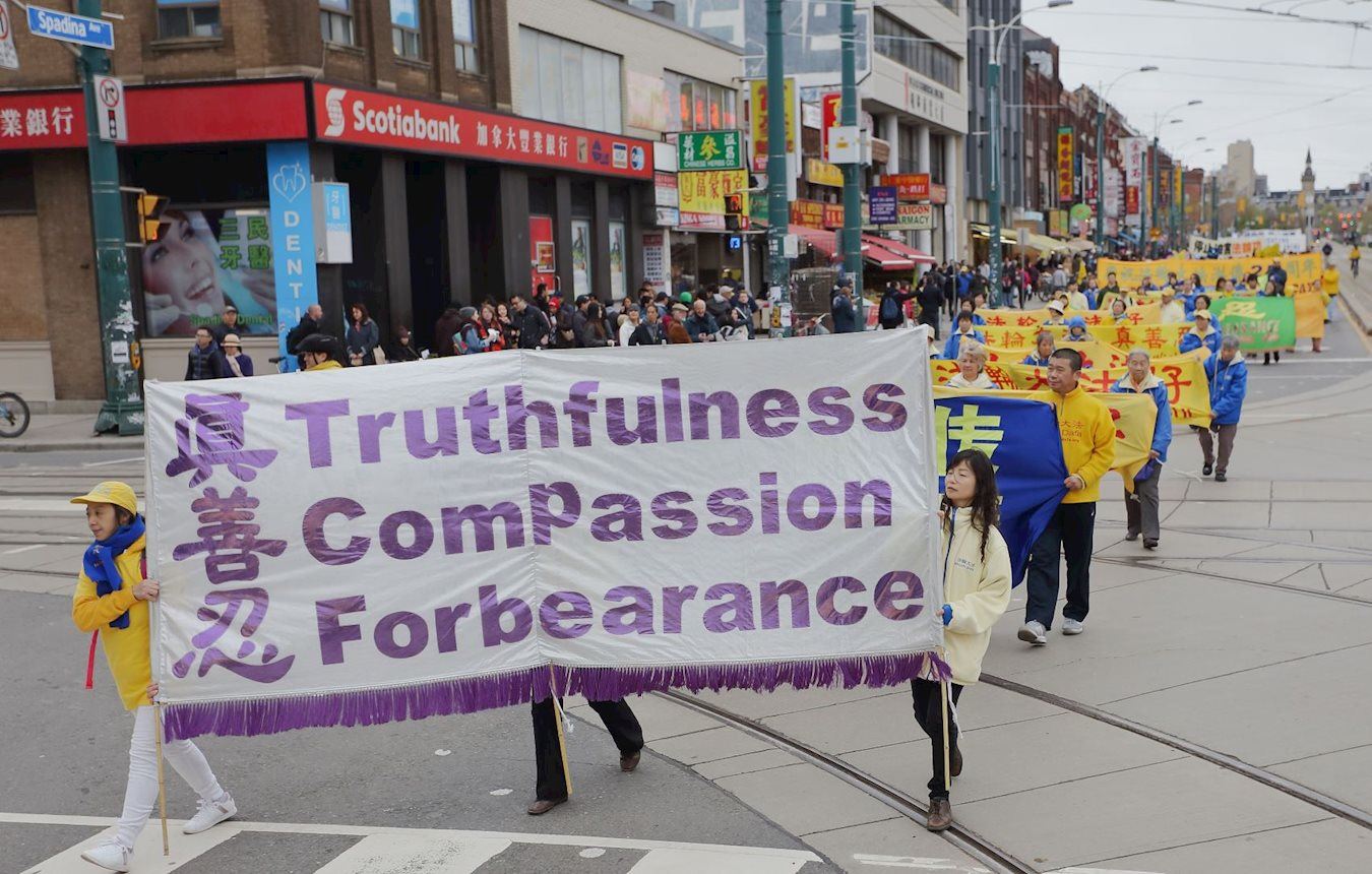 来自江西的黄先生今年81岁,他来多伦多探亲半年,他表示自己是第一次亲眼看到法轮功这么大规模的集会和游行,他说:“我在电视上看到过纽约的游行,我当时就很感叹了,这么壮观的游行。今天我在这看到了,觉得海外真自由,可以举行这么大的游行,还有警察保护。如果在大陆,你这还没几个人出来呢,派出所那边就要大搜捕了,对法轮功的迫害真的是很残酷。我在国内是一名干部,这么多年了,我非常清楚法轮功(学员)是一群好人。其实国内现在已经有很多人也非常明白的了,有的都在帮着法轮功学员,只是还有些人为了钱和权还在做着伤天害理的事。法轮功迟早会得到平反的。”