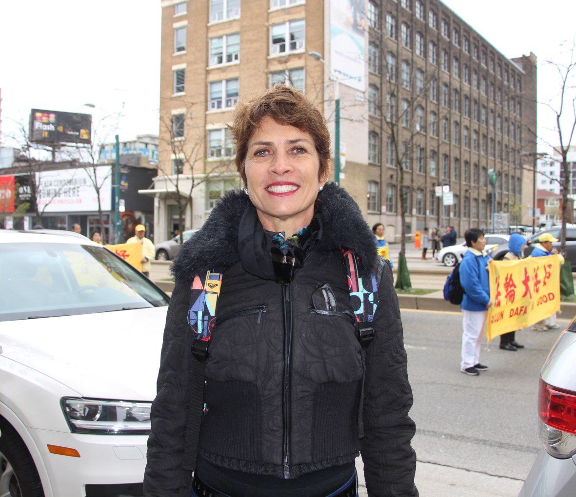 大学生Chantelle Sequeira在瑞尔森大学(Ryerson University)读书,她和好朋友Anna Dube一起来看了游行,她说:“法轮功学员应该有自由修炼法轮功。法轮功学员修炼的法轮功很好,他们没有伤害任何人,相反他们在帮助别人,所以迫害法轮功学员毫无道理。”