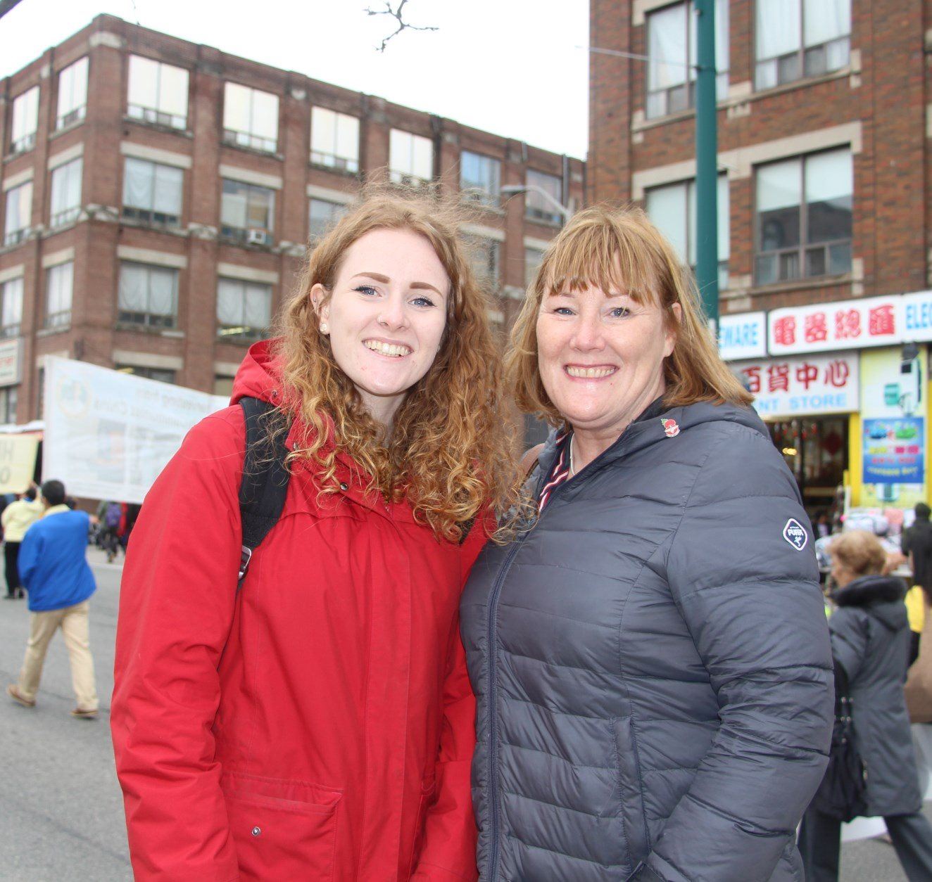 ![]() 图4:来自苏格兰的Maria母女俩,一直在观赏着游行,她说:“我们第一次看到这么多华人参与的游行,非常美好的游行。” |