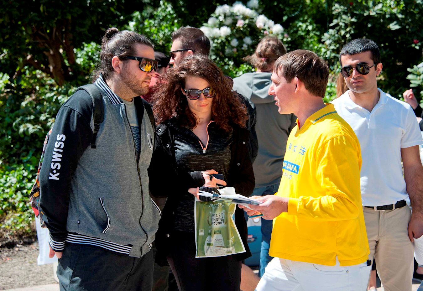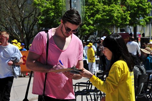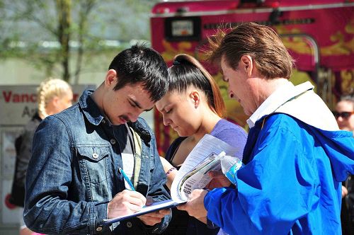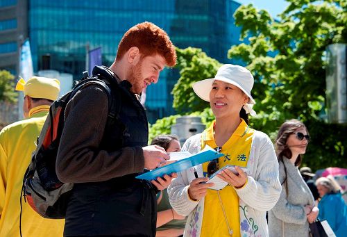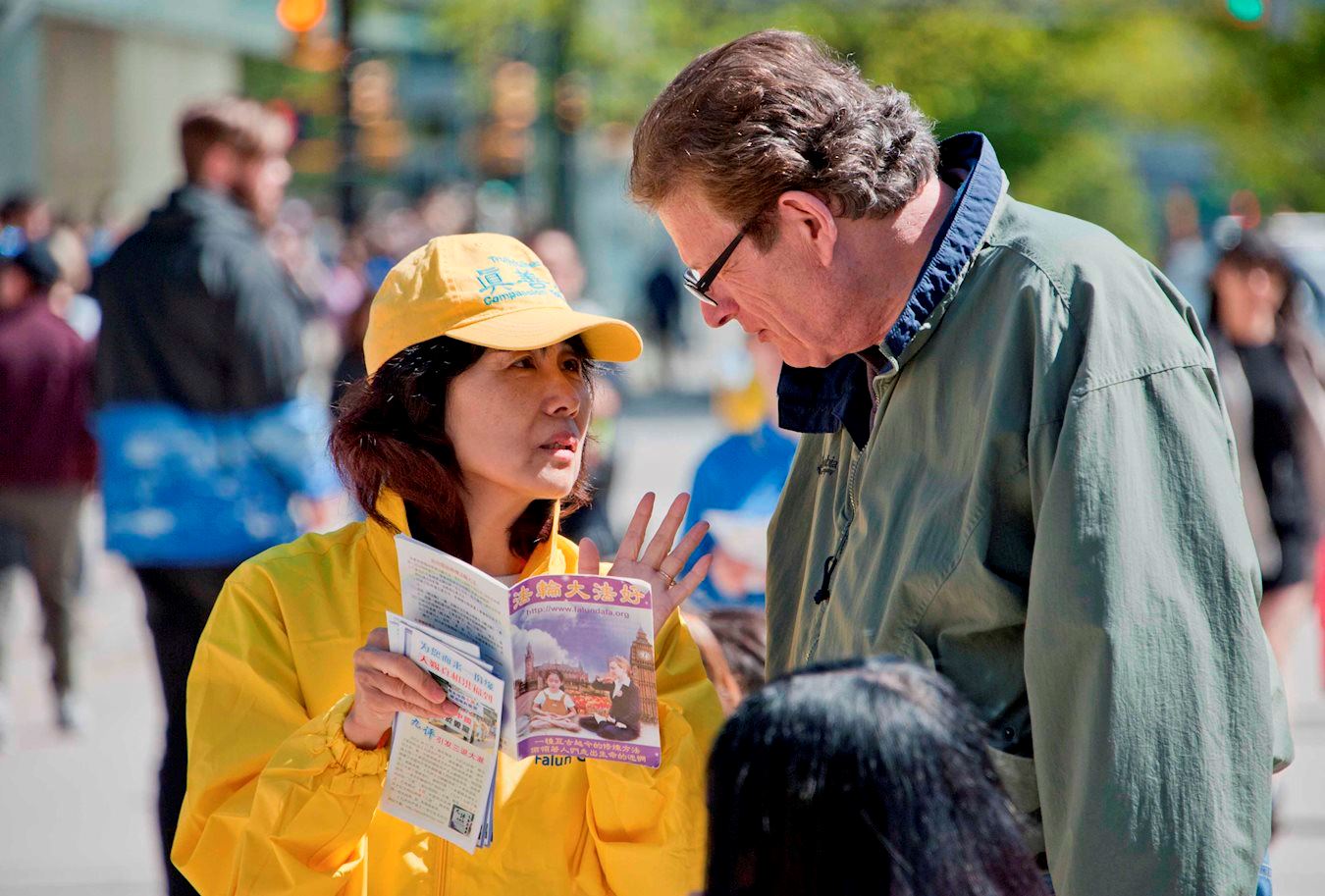 温哥华市民Gary先生是一位企业主,他路过活动现场,被庆祝活动所吸引停留观看,他表示,今天是个好日子,一个伟大的日子,法轮功学员的庆祝活动很吸引人,很好,可以让更多的加拿大人了解真相。对法轮功的迫害应该立刻停止,但很不幸确仍然还在发生,他相信那些迫害者最终会受到审判和惩罚。