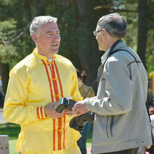 游行结束后,学员们在公园里弘法,在真相展台前,学员们展示功法,并告诉人们法轮功是一种提高自我修养的修炼方式,却在中国大陆被非法。很多民众了解这一修炼方式后,跟向学员学炼法轮功。公园里很多孩子对法轮功的功法和打坐非常感兴趣,一个女孩学过炼功动作后,把她的朋友又叫过来让学员们再教授她们一次。
