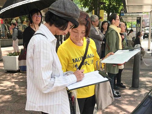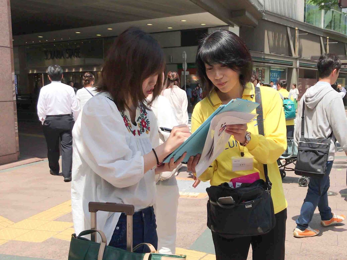 在全球掀起联署声援诉江大潮以来,自始至终参加联署活动的学员说:“到日本的中国大陆的旅客有增无减,我们的联署活动不仅仅是面向日本社会的民众,对来到这里的很多中国游客来说能够接触法轮功被迫害真相的机会难得。”
