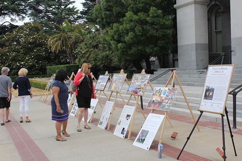斯蒂芬妮(Stephanie)是州政府的员工,休息时散步看到法轮功图片展,又听说当地就有法轮功炼功点,免费教功,非常想学炼。她说她最近正想学炼瑜伽太极之类的打坐练习,结果今天就听说了法轮功,这太好了,她感谢法轮功学员在这里举办这样的活动。