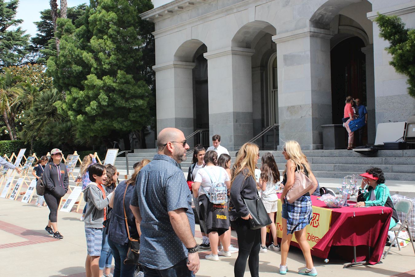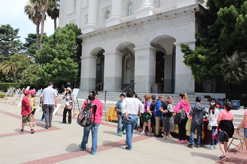 ![]() 图2~3:州政府大楼是加州官员办公的地方,也是许多各级民众前来参观之地。法轮功学员的活动不仅吸引了州政府大楼工作人员的目光,也吸引了前来办事或参观的民众的瞩目,许多人阅读法轮功的真相图片展。 |