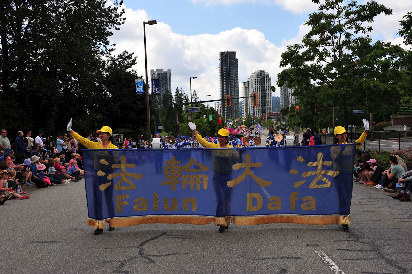 高贵林市位于温哥华市郊,每年的泰迪熊节游行都是社区的盛事,六月十一日这天,很多居民举家早早坐在路边观看游行。温哥华法轮功学员的游行队伍包括,天国乐团,腰鼓队,真善忍花车,法轮功功法演示队等,一路走来受到沿途观众热烈欢迎。很多华裔观众纷纷接受法轮大法真相传单,和为法轮功学员的游行鼓掌或拍摄法轮功学员的游行队伍。