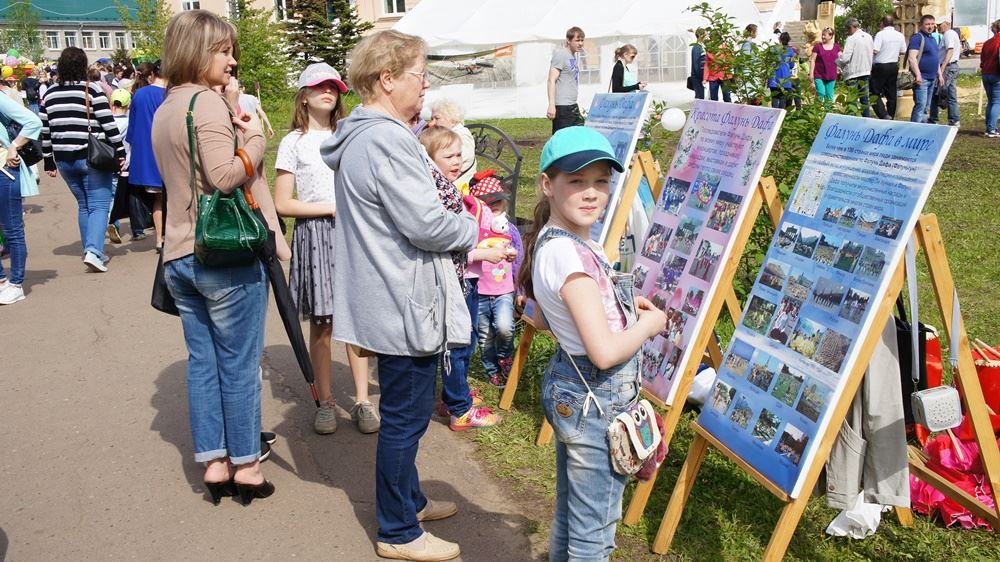 傍晚,在市政府旁设立的为庆祝城市日举办的歌舞晚会舞台上,主持人向民众们介绍了法轮功后,迎来了学员们表演的“法轮大法好”舞蹈,赢得了台下观众的热烈鼓掌。