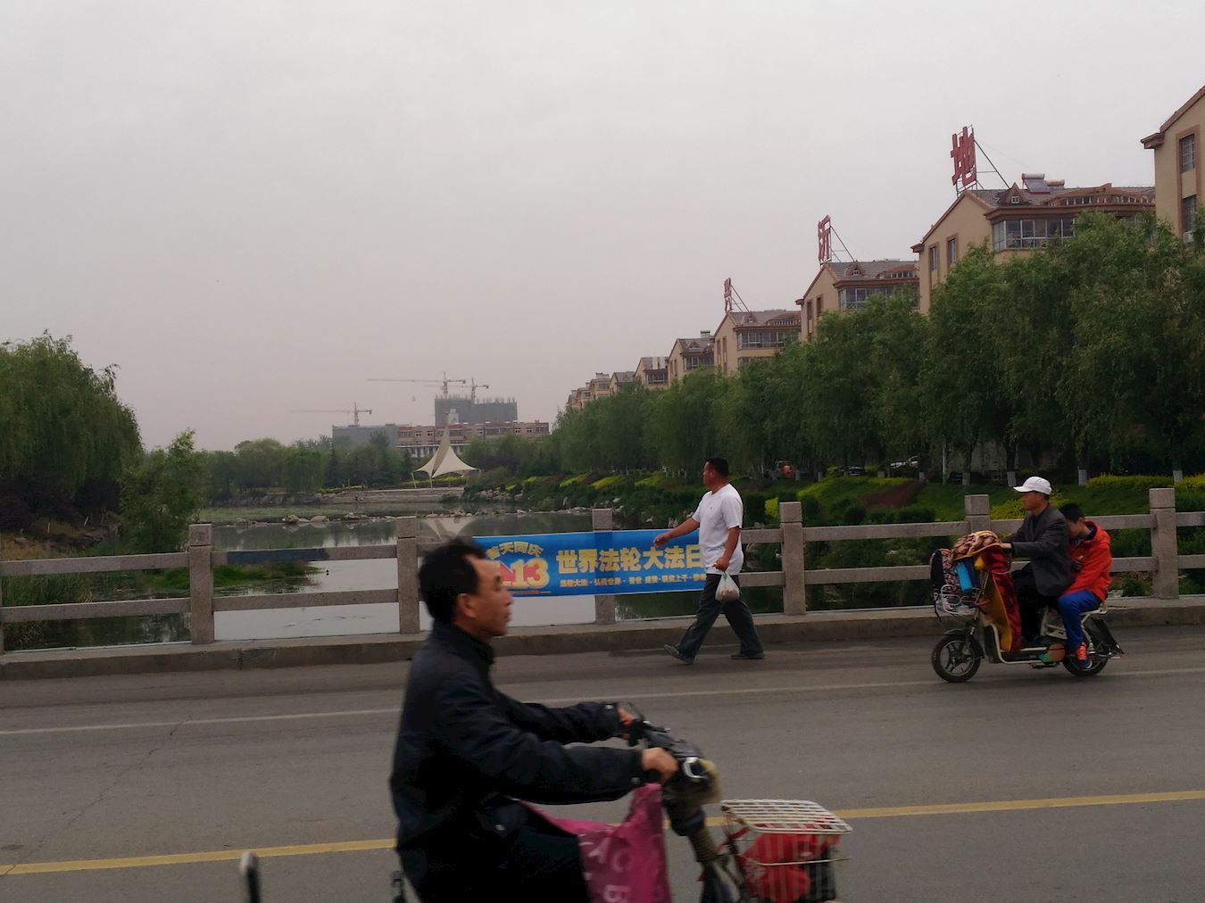 在位于市中心的城市公园的草坪上集体炼功,学员们祥和慈悲的炼功场景,吸引了行人驻足观看展板,接到真相资料详细阅读,向学员打听详细情况在哪可以学炼,并拍照留念。