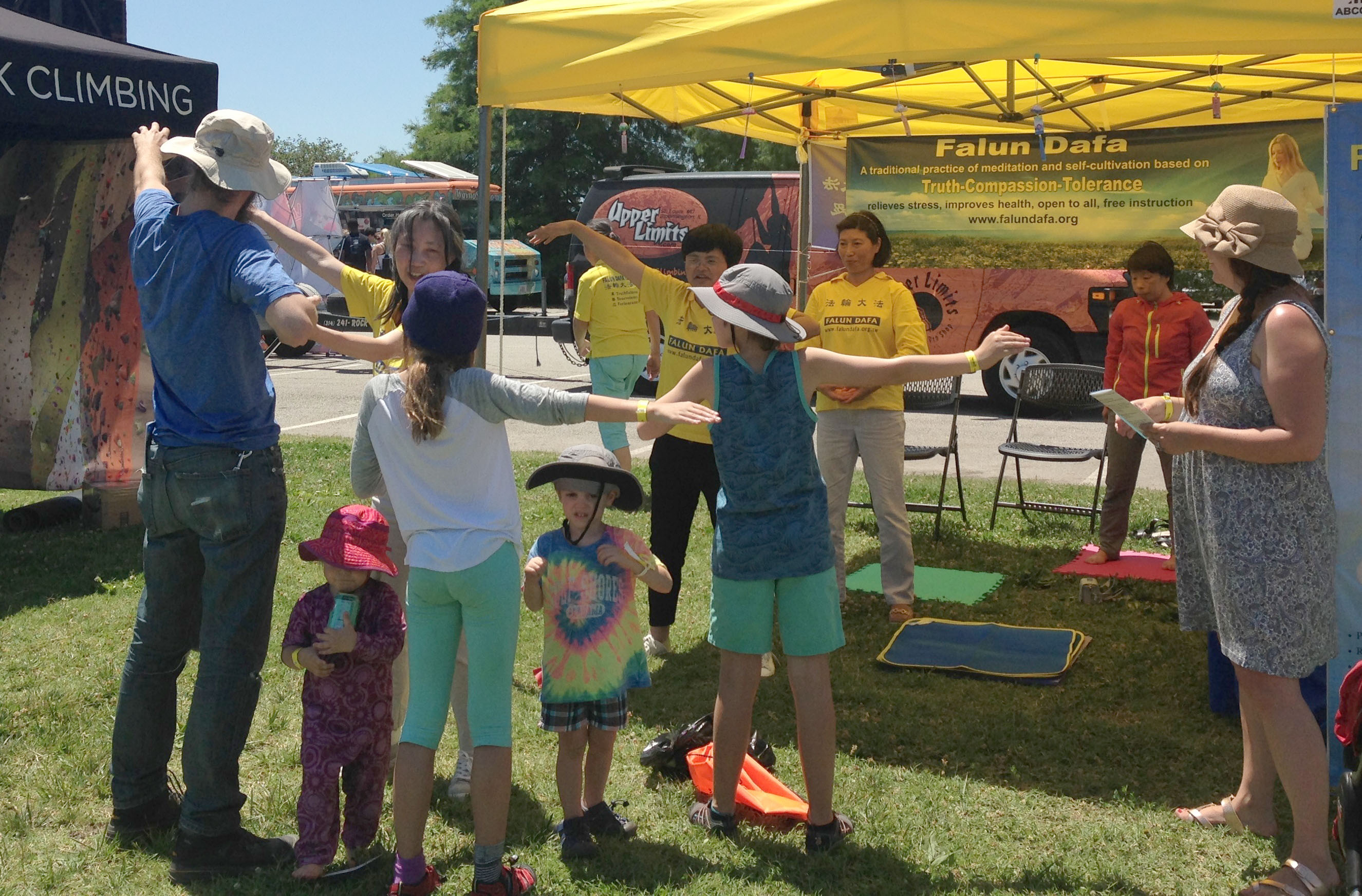 活动上,市民可以亲身体验多种多样的户外运动,包括攀岩、划船、骑自行车、观鸟、园艺、沙滩排球等等。法轮功学员继去年参加了首届户外运动节后,今年再度前来,向社区介绍法轮功。