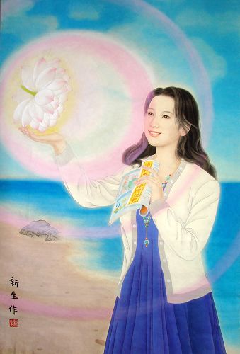 作品描述世人在了解法轮大法好的真相那一瞬间,在佛光普照中生命对未来充满希望和喜悦。
