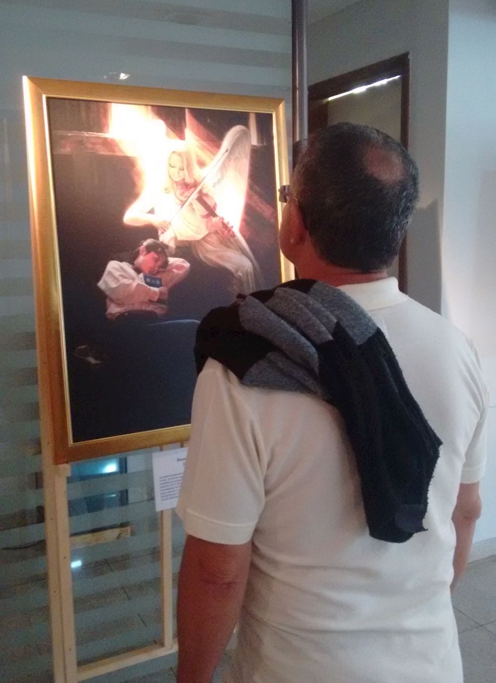 ![]() 图8:Cremildo先生正在观看画作。他表示想更多了解法轮大法。 |