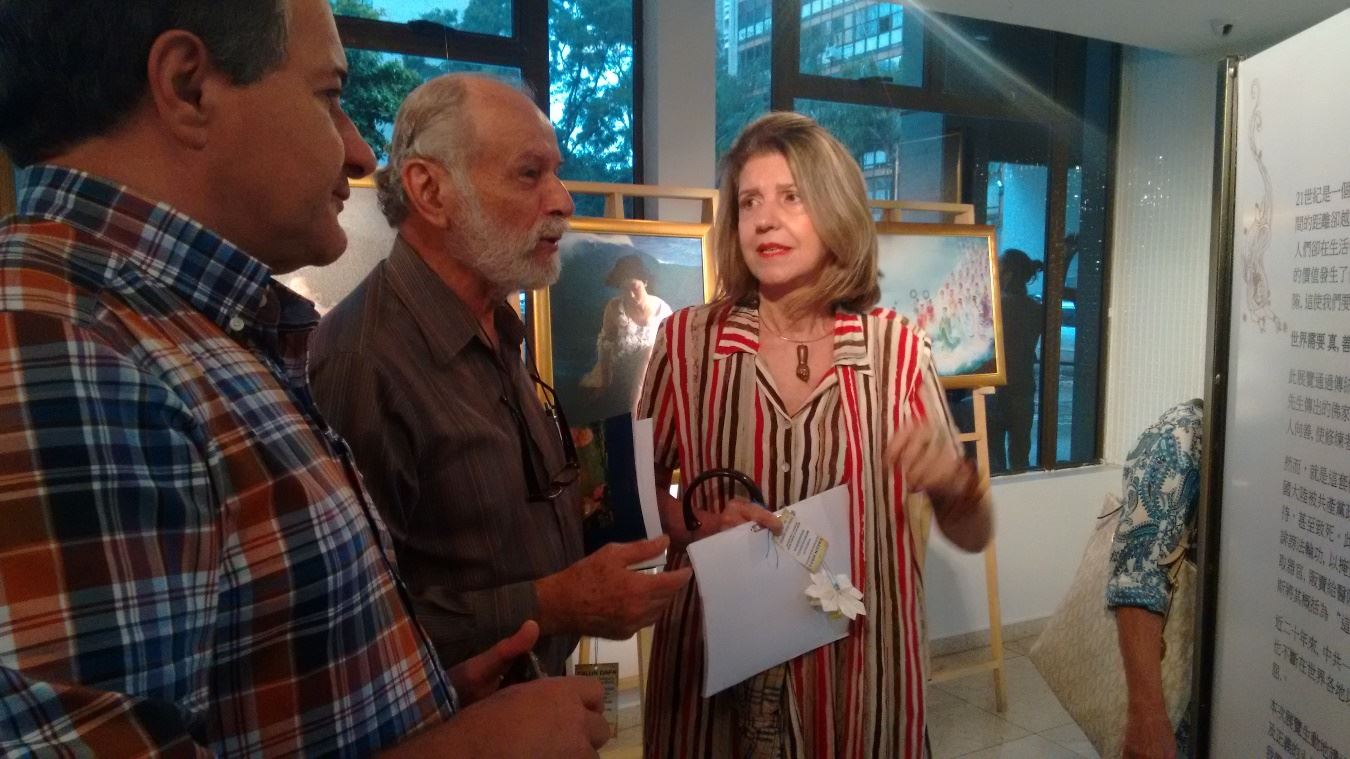 第二天Marlus的太太Luciana也来参观真善忍美展,她观看完画作后,眼里噙着泪说:“这些画太美了,但对正信者的迫害太令人心酸了,人人都应该谴责它。”她表示多年前她就尝试过打坐,但心静不下来,思想翻滚象放电影,所以放弃了。学员建议她先读《转法轮》,脑中的杂念被清除后,打坐会静下来的;并告诉她法轮大法是最快、最好的提升生命层次的修炼方法,她说:“太好了,我马上阅读。”
