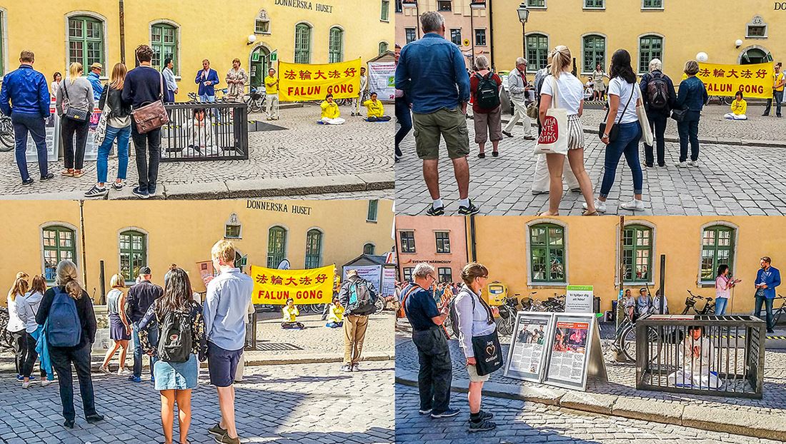 在摊位附近的一个广场上,法轮功学员们还得到每天一个小时公开演讲的机会。环境党国会议员尼克拉斯·马默贝耶(Niclas Malmberg)和温和党国会议员汉斯·罗森贝耶(Hans Rothenberg)在七月五日的法轮功学员的公开演讲活动中也前来声援。他们在公开演讲中提到,由中共政府主导的活摘器官罪恶比惊悚小说还惊悚,一般人无法想象得到。他们表示,瑞典可以和中国有正常贸易往来,但绝不能做器官交易。他们还希望人们能够帮助广传真相。