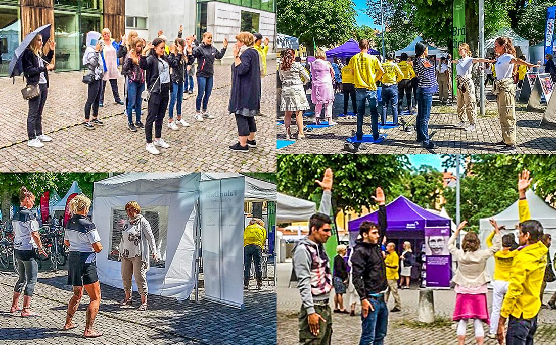 学员们在这里的活动受到了媒体的关注,瑞典国家电视台、瑞典国家电台、瑞典电视24台都分别前来采访了学员和活动现场。今年来参观集会周的瑞典各界人士有四万多人。在活动结束的最后一天,很多明白了真相的人们经过法轮功学员的摊位时,脸上都洋溢着喜悦,面带微笑地说:“感谢你们给这里带来的一切美好。”