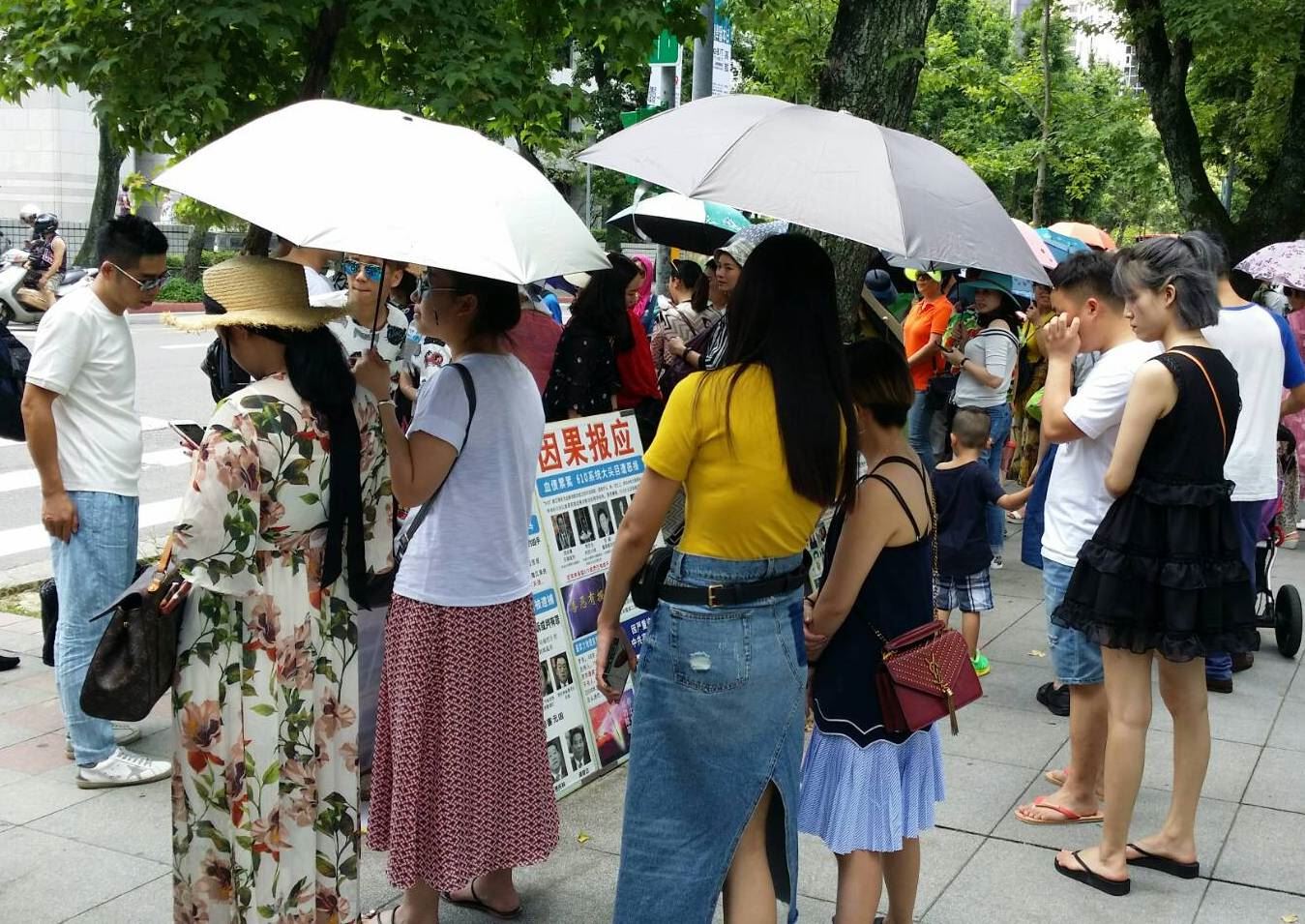 每到整点,国父纪念馆一楼大厅的仪队交接仪式是大陆游客争相观看并拍照纪录的重要景观。当交接仪式结束,一踏出大厅正门,很多中国人会被另一幕所震撼:映入眼帘的是五位法轮功学员正在炼功,动作整齐划一,而且就在这国际知名景点的正门外!有些大陆游客立即拍照,也有的在仔细端详。几位同团出游的大陆游客一句接一句地说:“你看哪,是法轮功呢,在这里公开炼呢!”另一位接着:“看到没,她们手上都还捧着莲花呢。”“我跟你们说,不只在台湾,我到美国,还有几个国家都看到过。”“其它国家允许这个信仰自由,我们国内不行啊!”“唉,不就是信仰吗?不就是炼功吗?这么多年了可把这群人整惨了,硬要说人家反党啊!”一群六十来岁的同团朋友们,回忆起了在中国大陆迫害发生前法轮功学员集体炼功时的盛况,不胜感慨。