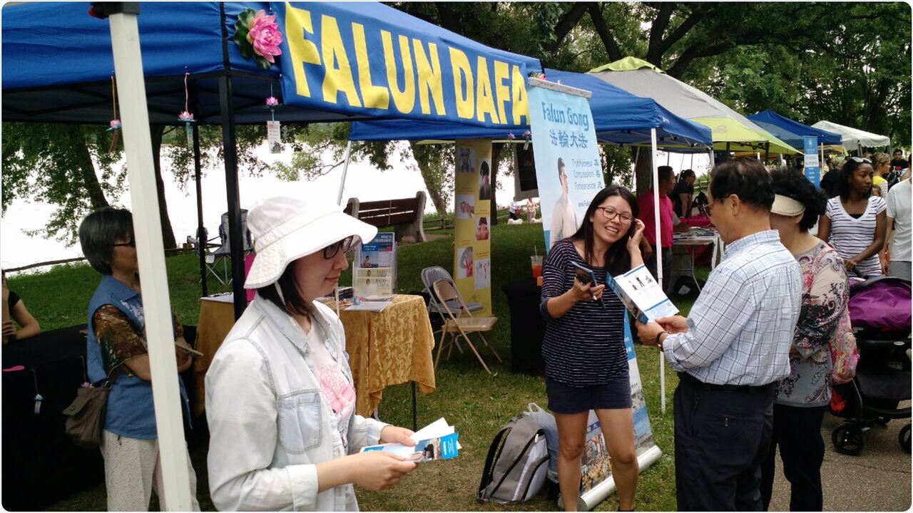 来参加活动的民众有多种族裔,对大法的了解也有深有浅。其中有一位白人老先生一看到大法学员的摊位就直接询问学员:“不好意思,我不是针对你们,也没有任何恶意,只是一直有这个疑问,中共为什么总是和你们过不去?”