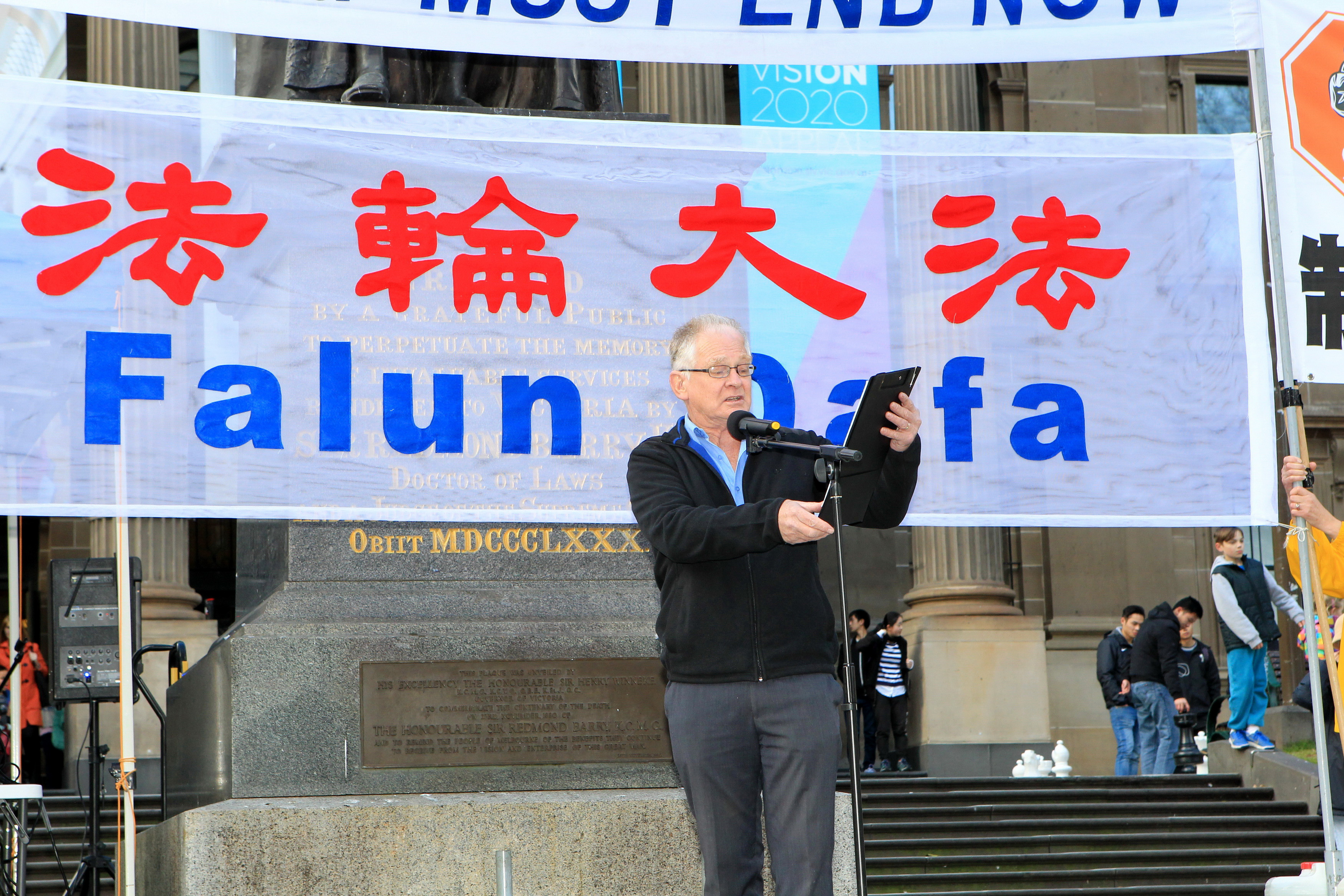 “是时候了,议员们应该像我一样地站出来,力挺你们(法轮功学员),在全澳各个议会大厅里,大声疾呼。”
