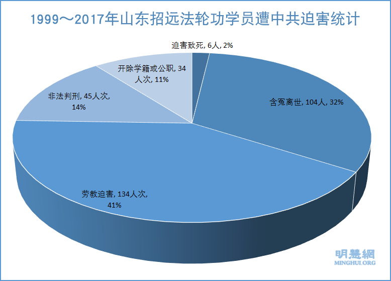 ![]() 图1:1999~2017年山东招远法轮功学员遭中共迫害统计 |