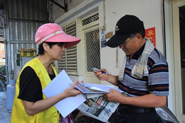 图1~2:法轮功学员在台湾苏澳镇征集签名,谴责中共迫害