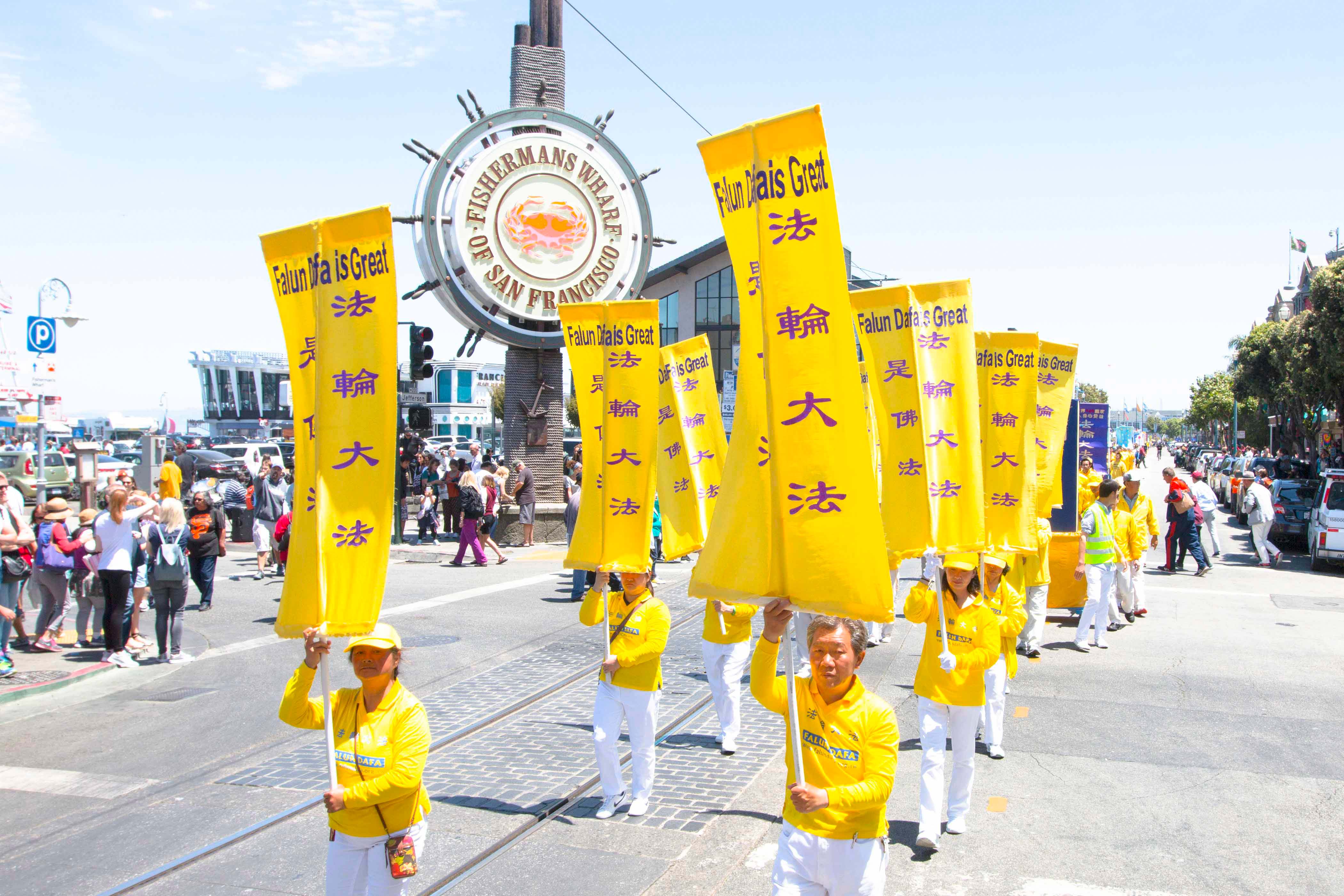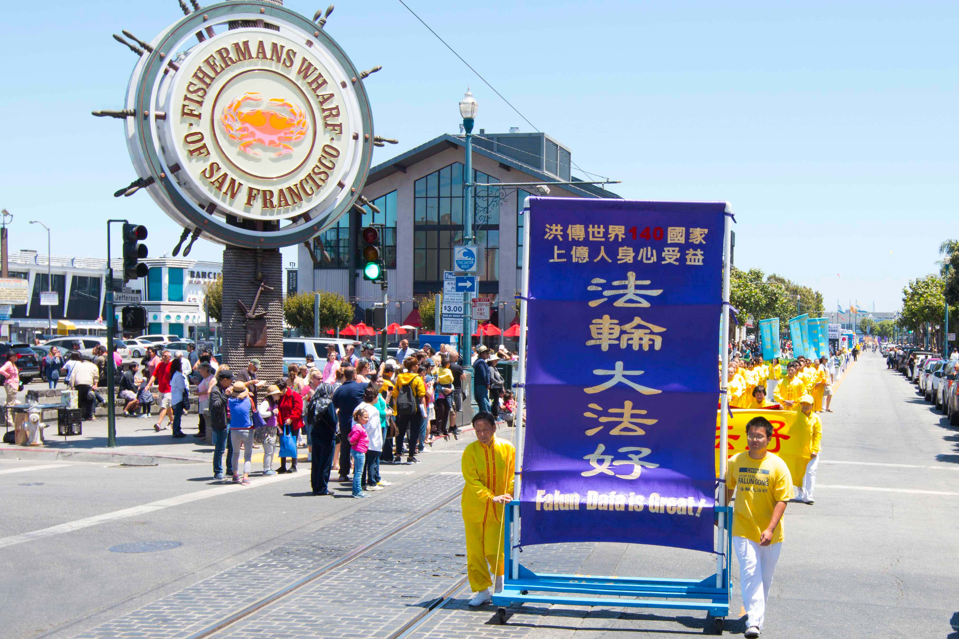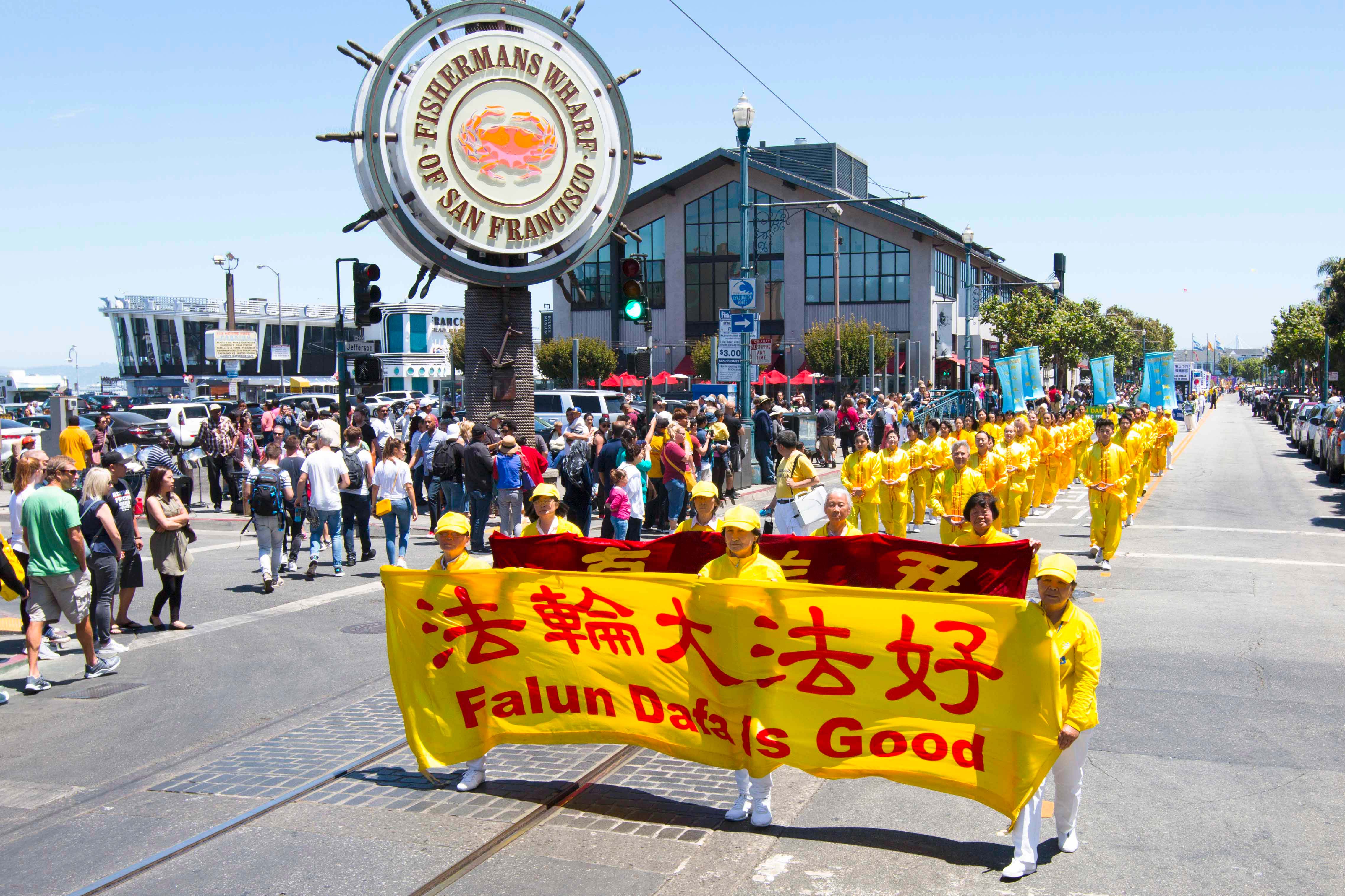 【明慧网二零一七年七月十六日】(明慧记者贾维、王英美国旧金山报道)二零一七年七月十五日,旧金山湾区的法轮功学员在市区旅游景点举行大游行,呼吁国际社会关注中共对法轮功的迫害,共同解体中共、制止迫害。 今年的七月二十日是法轮功学员反迫害十八周年。
