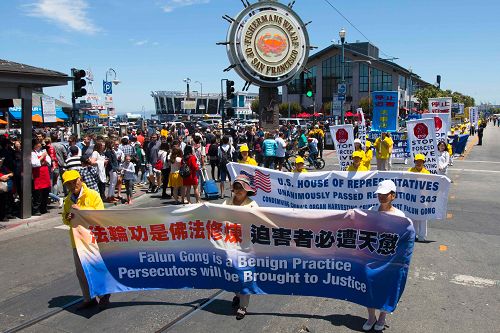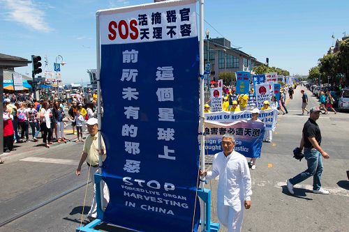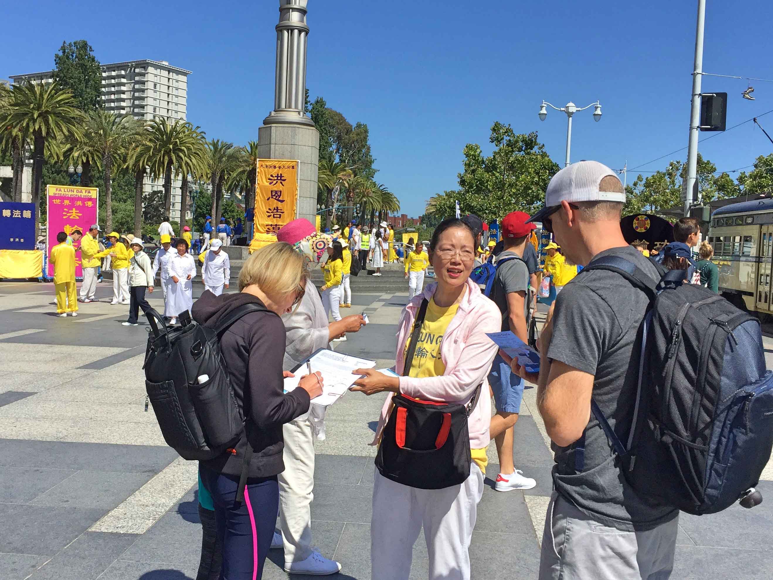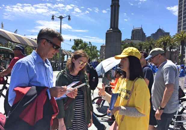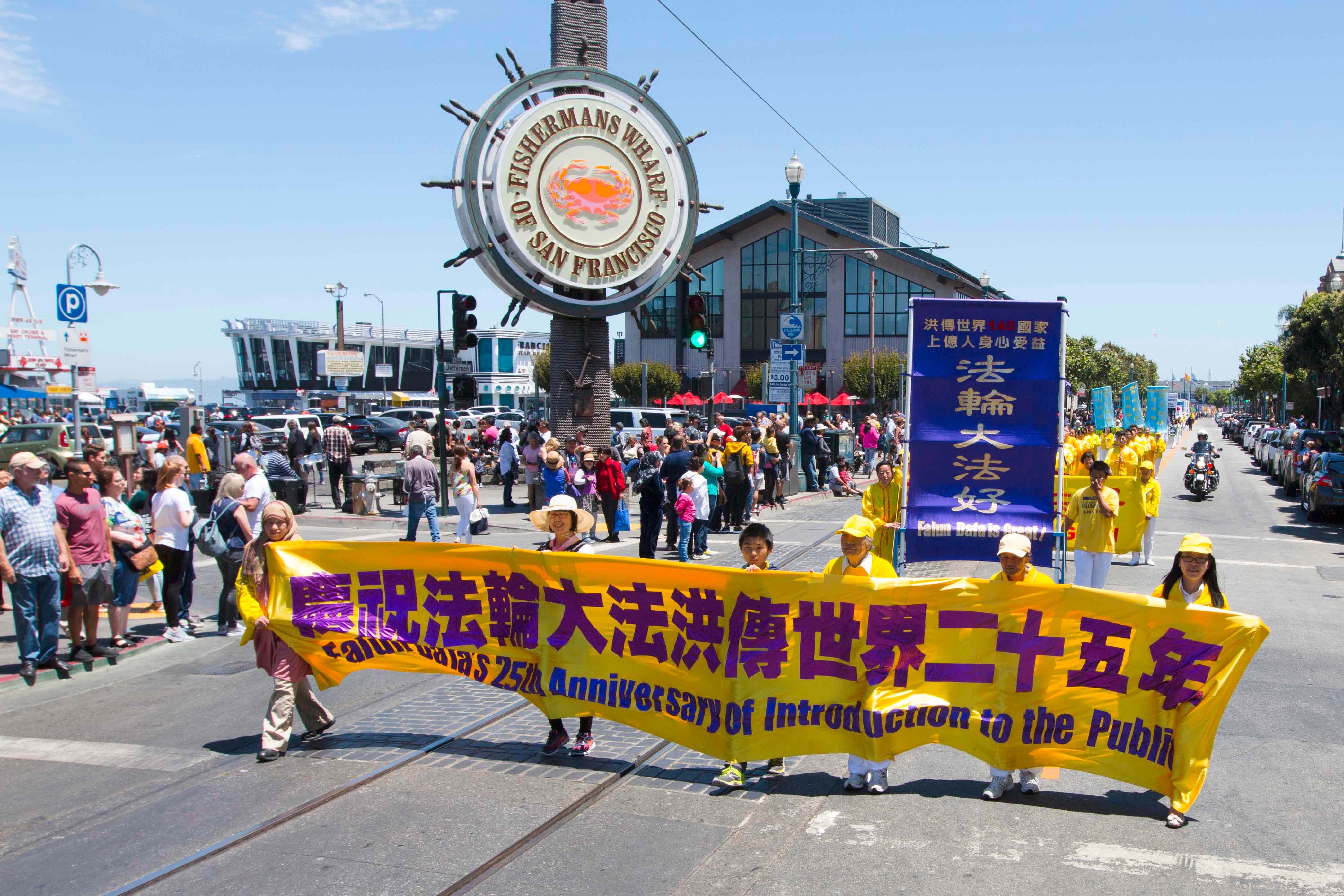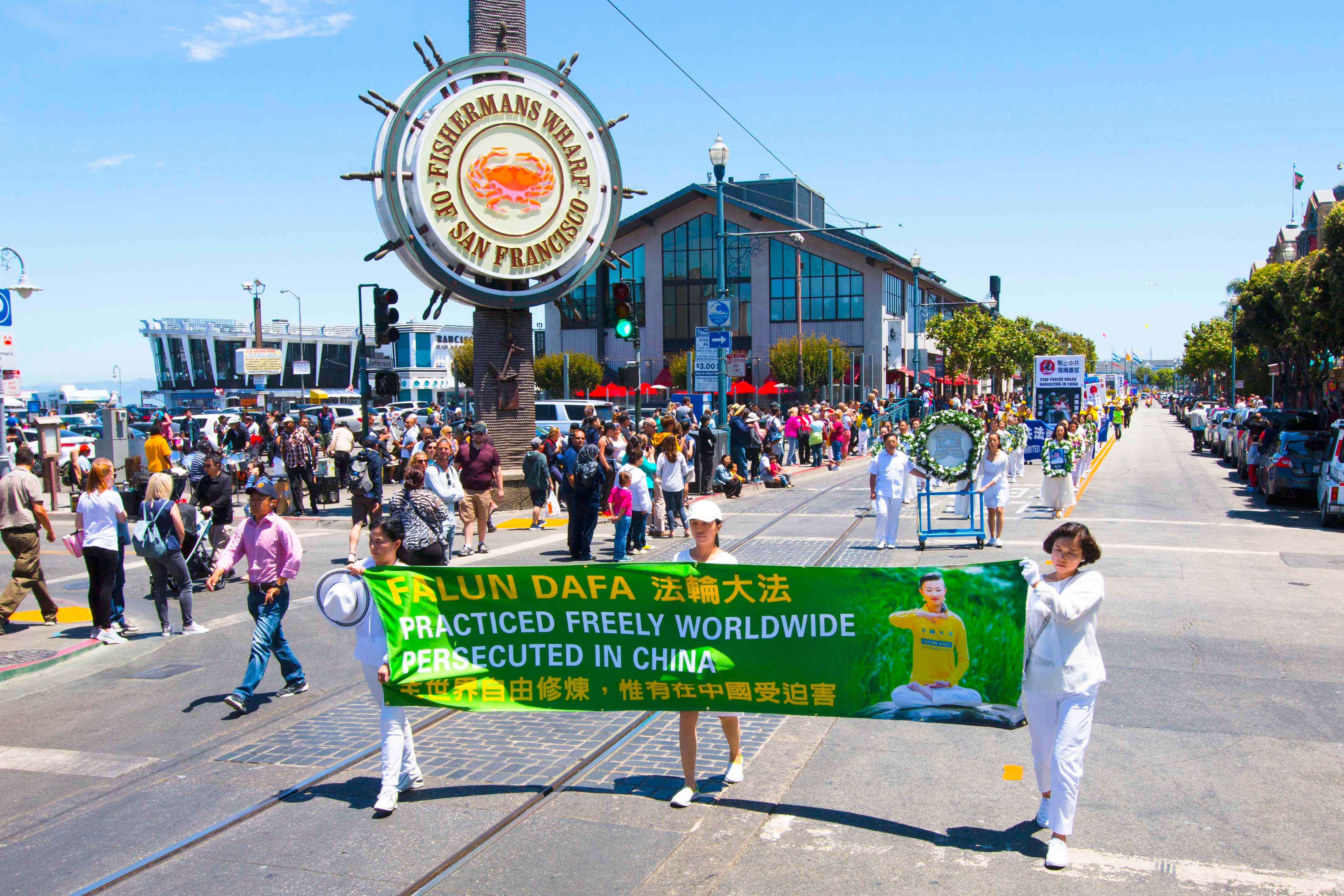 【明慧网二零一七年七月十六日】(明慧记者贾维、王英美国旧金山报道)二零一七年七月十五日,旧金山湾区的法轮功学员在市区旅游景点举行大游行,呼吁国际社会关注中共对法轮功的迫害,共同解体中共、制止迫害。 今年的七月二十日是法轮功学员反迫害十八周年。