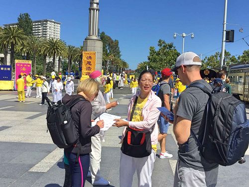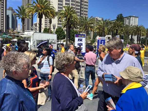 看到法轮功学员祥和的演示功法的场面,许多路人驻足观看并了解这是什么,有的听说法轮功是一门按照“真、善、忍”的原则,使修炼人身心受益时,许多人表示想要进一步了解;当听到中共动用酷刑、甚至活摘法轮功学员器官倒卖后,许多人表示气愤,签名支持制止活摘、制止迫害。