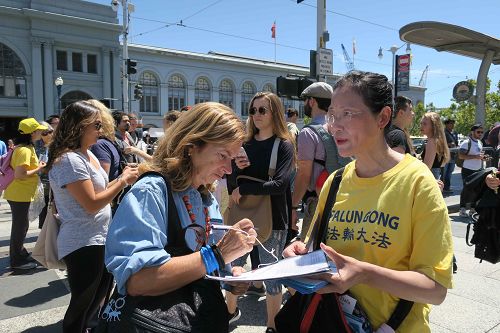 住在旧金山的Yvonne也在要求中共停止活摘法轮功学员器官的请愿信上签了名。她说:“我了解到法轮功学员被关押在监狱里,他们的器官被强行摘取。这是非人的行径。如果人要捐器官,这可以,如果不是自愿的,这就是迫害。这是野蛮行为,法轮功学员因他们的信仰受到迫害,因此我在请愿信上签了字。我希望应该做些什么,制止迫害。”