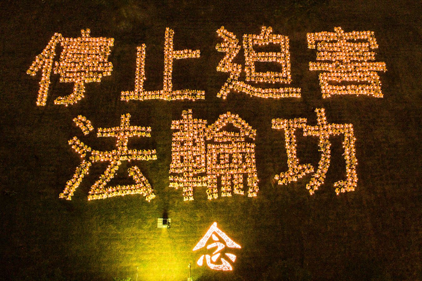 '图1~2:南台湾法轮功学员排字“停止迫害法轮功”,烛光悼念在中国大陆受迫害致死的同修。'