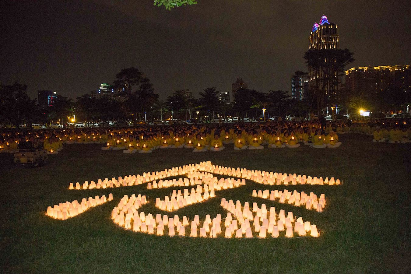 【明慧网二零一七年七月十七日】(明慧记者孙柏、苏容高雄采访报道)二零一七年七月十五日周六晚间,台湾南部约一千五百名法轮功学员于高雄凹子底森林公园举行排字烛光悼念会,谴责中共对法轮功自一九九九年七月二十日开始的十八年血腥迫害,呼吁社会各界政要、民众携手共同制止暴行。