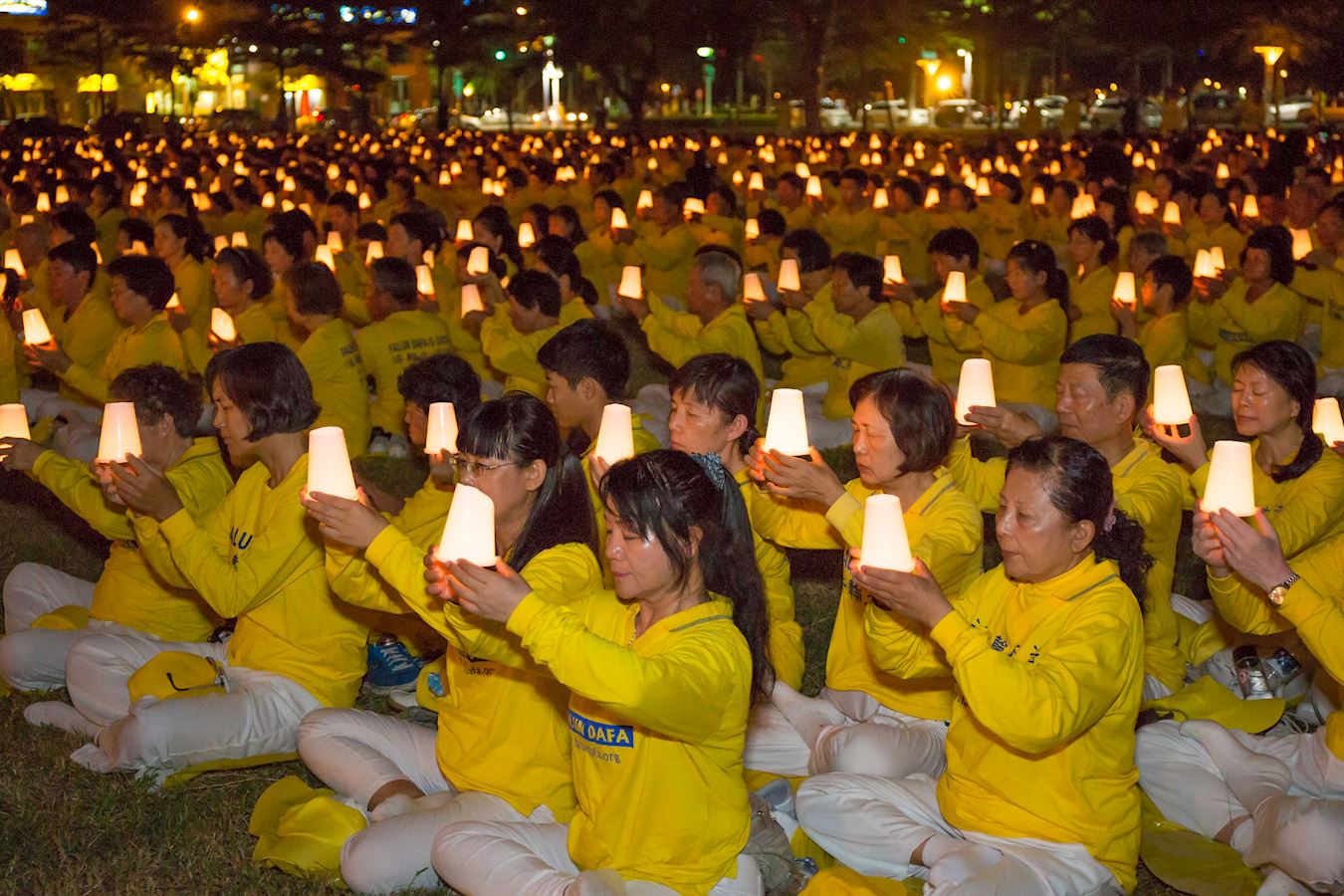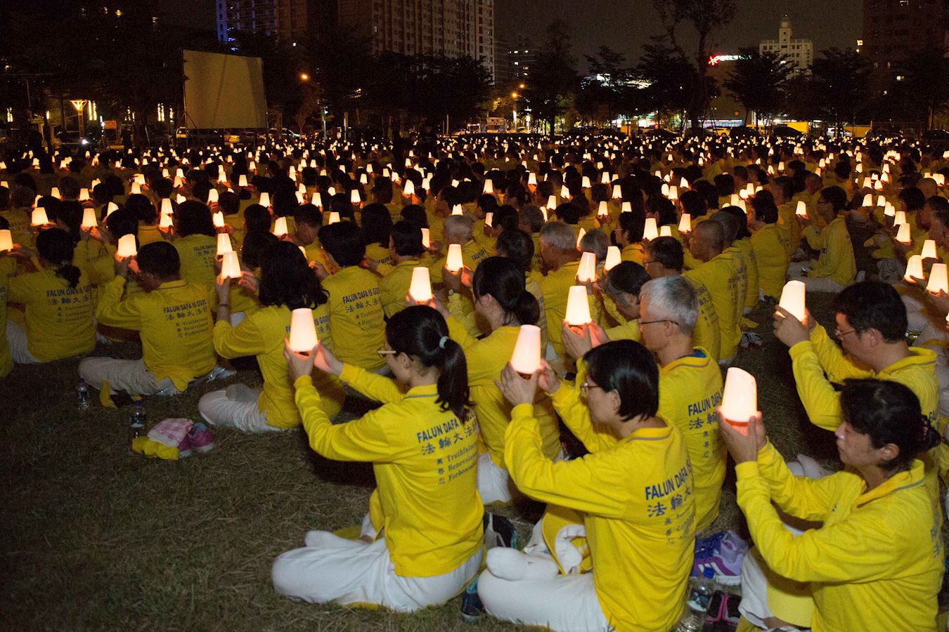 '图3~4:南台湾法轮功学员高举烛杯,悼念在中国大陆被迫害致死的同修。'