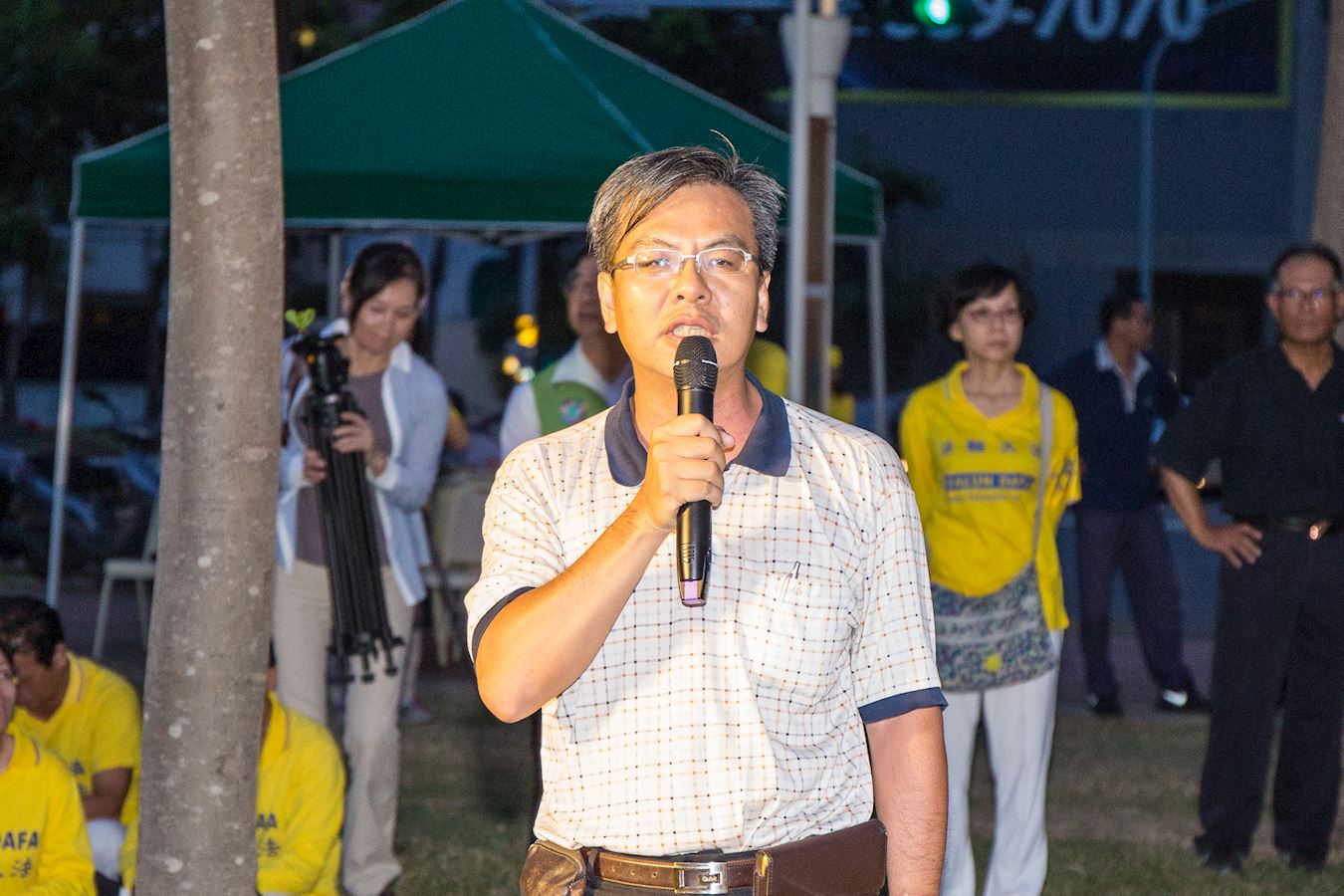 图9:高雄市议员蔡金晏:“我们必须站出来声援,广传真相。谴责迫害,向中共施压,制止迫害。”