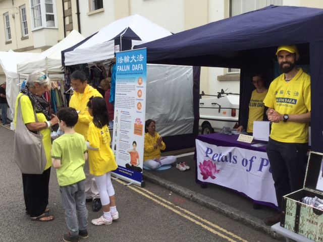 【明慧网二零一七年七月十七日】最近,英国法轮功学员再一次来到哥罗万节(Golowan Festival)传播真相。哥罗万艺术节(Golowan Festival)是英国西南康沃尔郡(Cornwall)的重要地方文化节日,每年六月下旬在海滨城市彭赞斯(Penzance)举行,也被当地民众称作“仲夏艺术节”。