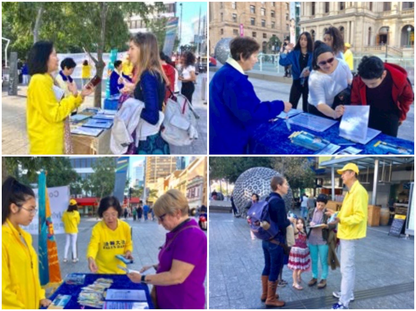 二零一七年七月十五日,澳洲昆士兰部份法轮功学员在布里斯本广场举行了纪念“七二零”和平反迫害十八周年的活动,把法轮大法的美好及迫害真相告知过往民众。