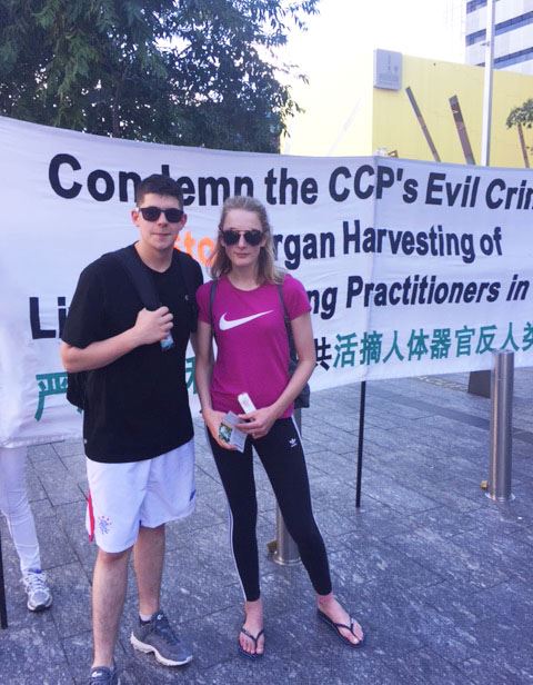 来自苏格兰的女学生和朋友告诉学员他们以前对法轮功不太了解,更不知道迫害这么残酷。了解真相后,他们立即在征签簿上签名,表示要为正义发声。