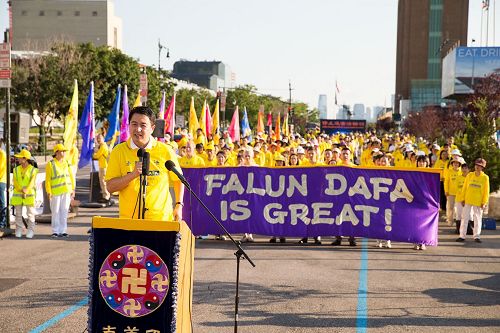 哥伦比亚大学政治学博士、时政评论员李天笑在集会上说,十八年前中共江泽民集团开始了对法轮功的残酷迫害。无数法轮功学员被无罪投入监狱、劳教所,被酷刑,被活摘器官。同时无数法轮功学员挺身而出,在天安门广场,在全世界各个街头,讲清真相,制止迫害。